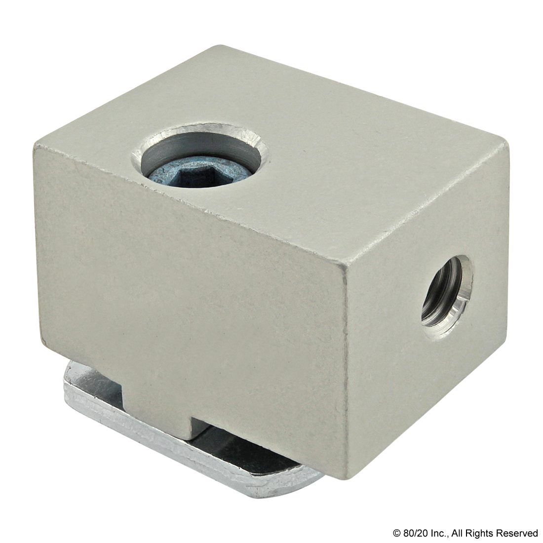 THE HEAVY PANEL MOUNT BLOCK CAN BE USED TO MOUNT A PANEL FLUSH WITH A PROFILE EDGE OR ON THE PROFILE SURFACE. THERE IS A SLOT TAB ON THE BLOCK THAT ACTS TO ALIGN THE MOUNT IN THE T-SLOT. THE HEAVY PANEL MOUNT BLOCK INCREASES STABILITY OF THE MOUNTED PANEL WHILE ALSO REDUCING VIBRATION. IT IS EASY TO USE AND SIMPLIFIES THE PROCESS OF ADDING OR REMOVING PLASTIC PANELS. THE HARDWARE TO MOUNT THE BLOCK TO THE T-SLOT IS INCLUDED WHILE THE HARDWARE TO MOUNT THE PANEL TO THE BLOCK SHOULD BE BASED ON THE PANEL TYPE AND THICKNESS. THIS PART MOUNTS 6MM PANELS FLUSH WITH 40 SERIES PROFILES.