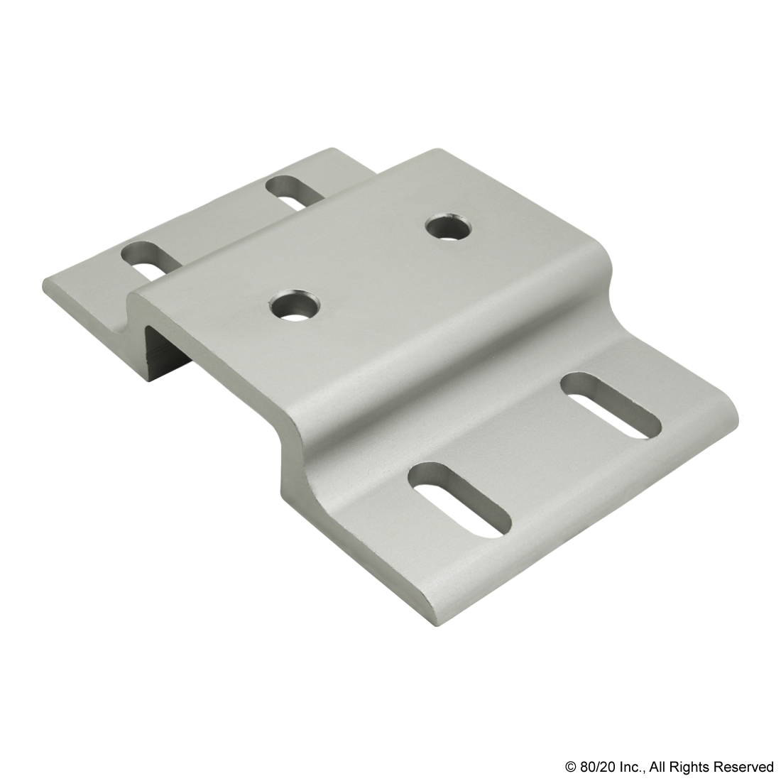 THE DOUBLE ARM WIDE MESH RETAINER IS USED TO MOUNT A MESH PANEL WHEN IT IS RECESSED WITHIN THE T-SLOT OR ON THE PROFILE FRAME. IT PROVIDES STABILITY AND REDUCES VIBRATION. THE WIDE ARM MAKES THIS A STRONGER CONNECTION THAT IS SIMPLE TO USE AND CAN BE EASILY REPOSITIONED. THE DOUBLE ARM WIDE MESH RETAINER IS PERFECT IN INSTANCES WHEN A PROFILE IS CONNECTING TWO ADJACENT PANELS. IT HAS SLOTTED HOLES TO ALLOW FOR POSITIONING SO THAT THE BOLTS ` CRASH INTO THE MESH. THE DOUBLE ARM WIDE MESH RETAINER REQUIRES BACKING PLATES. THE SUGGESTED HARDWARE TO MOUNT THE RETAINER TO THE T-SLOT IS LISTED ON THE "SUGGESTED HARDWARE" TAB WHILE THE HARDWARE FOR THE BACKING PLATES SHOULD BE BASED ON THE PANEL TYPE AND THICKNESS.