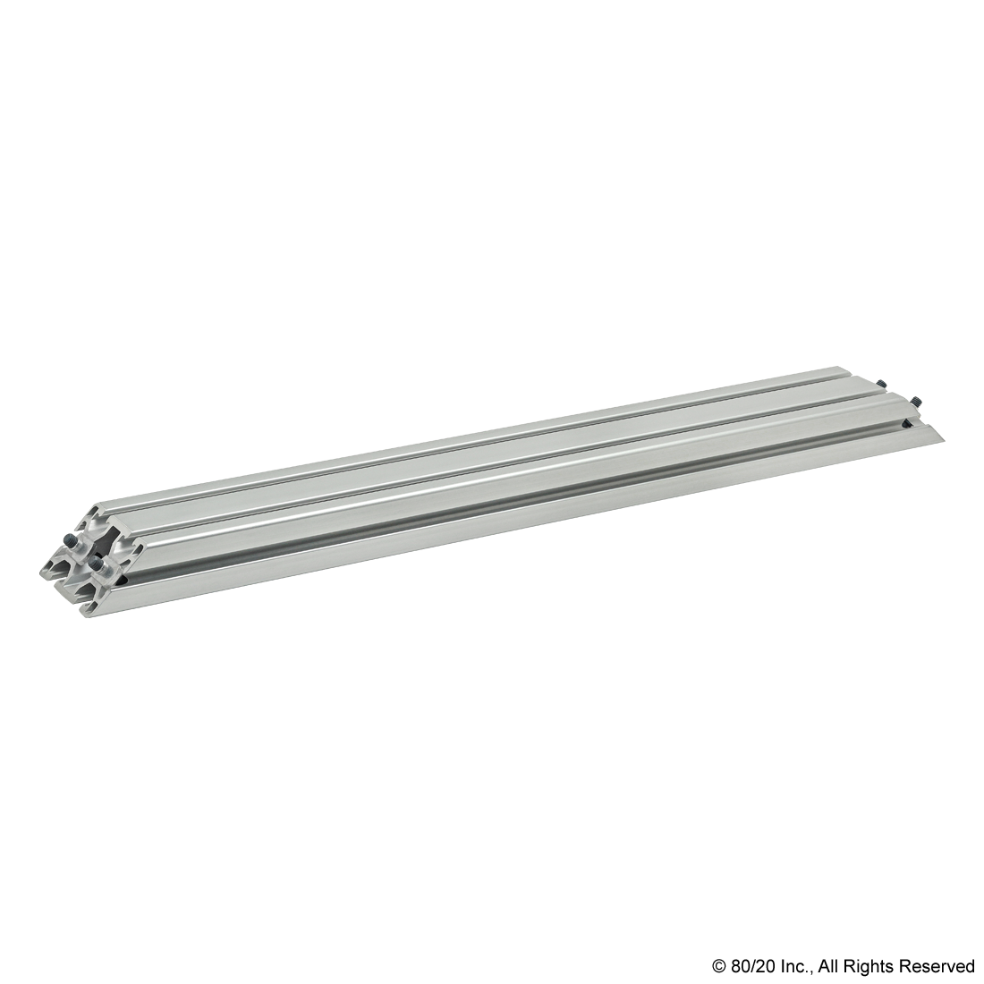 THE 45 DEGREE SUPPORT ASSEMBLY INCLUDES SOCKET HEAD CAP SCREWS, WASHERS AND T-NUTS. THE SUPPORT ASSEMBLY IS PRE-MACHINED WITH COUNTERBORES AND A 45 DEGREE MITER ANGLE ON BOTH ENDS. THIS FASTENING METHOD PROVIDES A CLEAN, FLUSH CONNECTION AND IS TYPICALLY USED TO REINFORCE A 90 DEGREE CONNECTION. THIS CONNECTION LENDS ITSELF TO APPLICATIONS WITH HEAVY LOADS TO MINIMIZE BEAM DEFLECTION.
