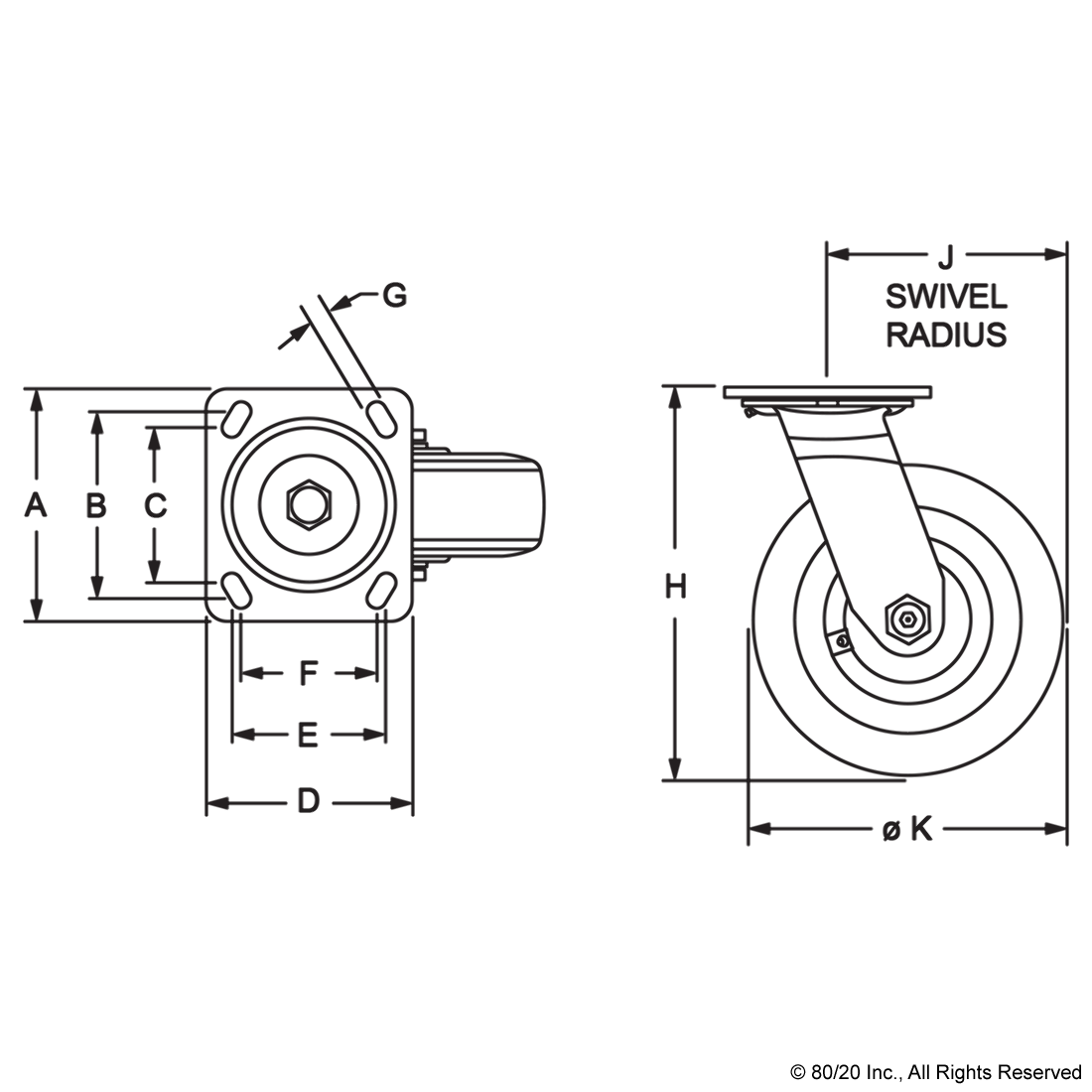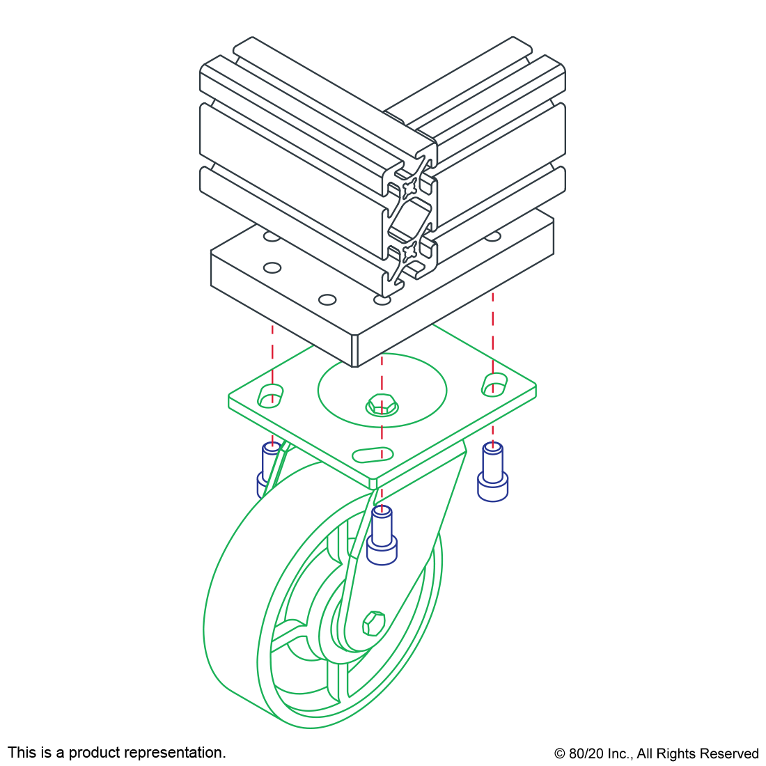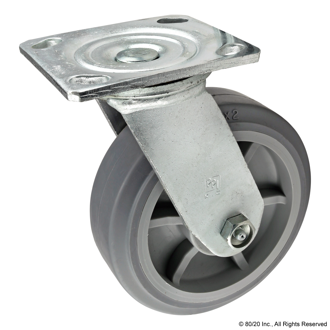 THE HEAVY-DUTY FLANGE MOUNT SWIVEL CASTER IS A FOOT THAT ADDS MOBILITY TO AN APPLICATION AND COMMONLY MOUNTS TO THE T-SLOT PROFILE END OR SIDE USING A BASE PLATE. THE SWIVEL ENABLES EASY MOVEMENT AND PIVOT TURNS WHILE THE DESIGN ALLOWS FOR EASY ACCESS TO LUBRICATION FITTINGS. IT IS A HEAVY-DUTY AND OIL RESISTANT OPTION WITH A HIGHER GROUND CLEARANCE. IT`S IDEAL FOR USE IN INDUSTRIAL SETTINGS SUCH AS LARGE WORKSTATIONS AND MATERIAL HANDLING SOLUTIONS.