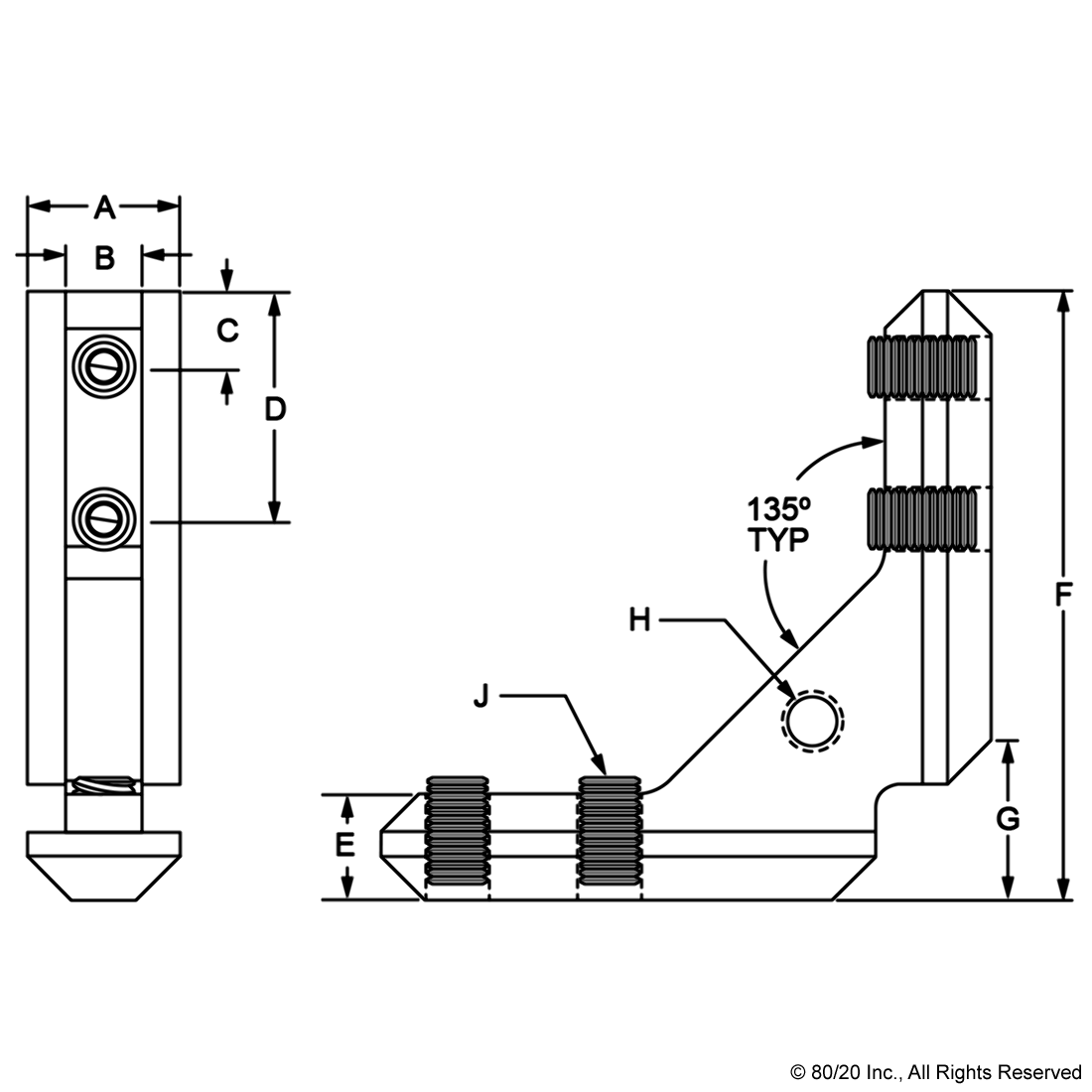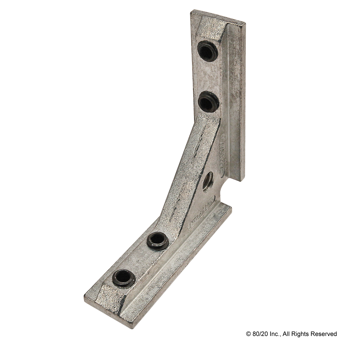 THE 90 DEGREE INSIDE CORNER CONNECTOR IS A STRONG METHOD FOR CREATING 90 DEGREE CONNECTIONS BETWEEN PROFILES. THERE ARE OPTIONS AVAILABLE IN ALUMINUM OR ZINC. THE REQUIRED HARDWARE IS INCLUDED WITH THE CONNECTORS AND NO MACHINING SERVICES ARE REQUIRED, MAKING IT A COST-EFFECTIVE FASTENING METHOD. THE ZINC CONNECTOR HAS A THROUGH-HOLE FOR PANEL MOUNTING.,