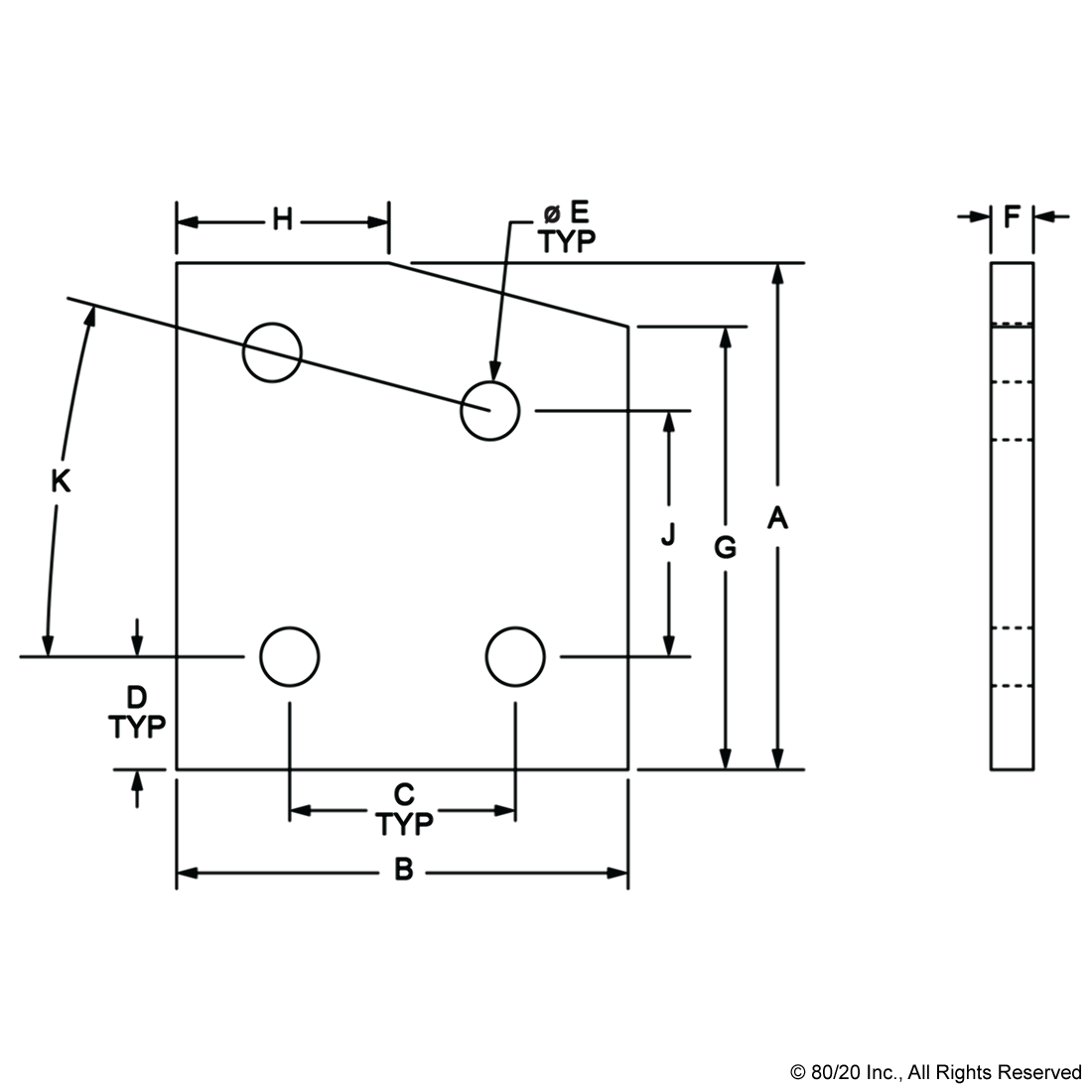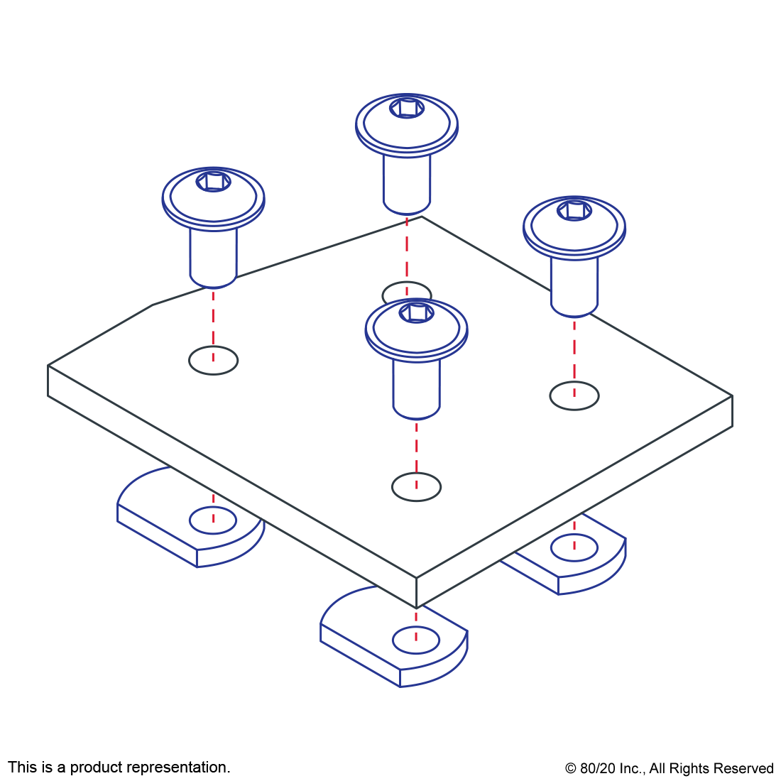 THE 4 HOLE - 15 DEGREE ANGLED FLAT PLATE IS AN EXTERNAL FASTENING METHOD THAT REQUIRES NO MACHINING SERVICES. THIS FLAT PLATE CREATES A 15-DEGREE ANGLE BETWEEN PROFILES AND ITS SHAPE REINFORCES THE STRENGTH OF THE CONNECTION. IT IS A DURABLE OPTION THAT IS EASY TO ASSEMBLE AND CAN BE RECONFIGURED AND REUSED. THE SUGGESTED MOUNTING HARDWARE CAN BE FOUND ON THE "SUGGESTED HARDWARE" TAB. TIP: USE DOUBLE SLIDE-IN ECONOMY T-NUT TO SAVE TIME AND MONEY. PRE-LOAD YOUR HARDWARE PRIOR TO CONNECTING PROFILES TO SIMPLIFY YOUR ASSEMBLY.