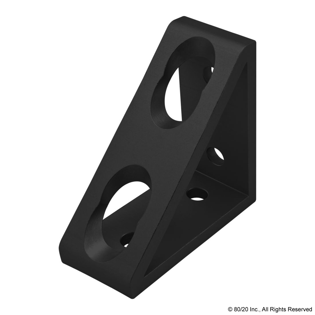 THE 4 HOLE - TALL GUSSETED INSIDE CORNER BRACKET IS A STRONG, EXTERNAL FASTENING METHOD THAT CREATES A 90 DEGREE CONNECTION. EACH SIDE OF THE BRACKET HAS TWO HOLES STACKED ONE ON TOP OF THE OTHER. IT REQUIRES NO MACHINING SERVICES AND CAN PROVIDE INFINITE POSITIONING ALONG THE PROFILE T-SLOT, ALLOWING A LARGE DEGREE OF ADJUSTABILITY. THE SHAPE OF THE GUSSET PROVIDES EXTRA MATERIAL, STRENGTHENING THE CONNECTION. THE 4 HOLE - TALL GUSSETED INSIDE CORNER BRACKET ENGAGES THE 2-DEGREE DROP-LOCK FEATURE WHEN THE ASSEMBLY BOLTS ARE TIGHTENED TO THE REQUIRED TORQUE. IT IS A FASTENING METHOD THAT CAN BE REPOSITIONED AND REUSED. THE SUGGESTED MOUNTING HARDWARE CAN BE FOUND ON THE "SUGGESTED HARDWARE" TAB. ,