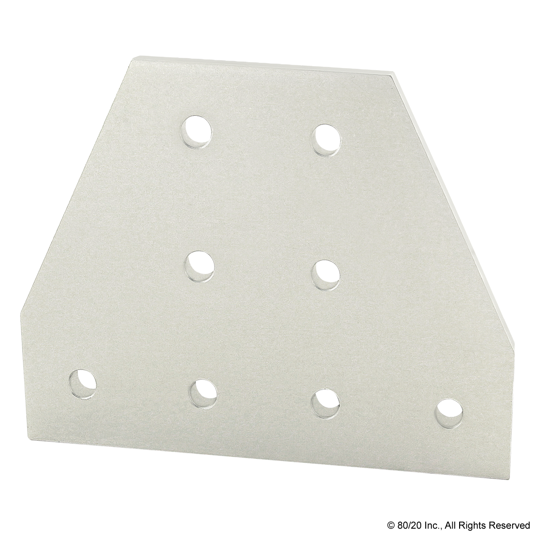 THE 8 HOLE - TEE FLAT PLATE IS A STRONG, EXTERNAL FASTENING METHOD THAT REQUIRES NO MACHINING SERVICES AND CAN BE USED TO CONNECT MORE THAN TWO PROFILES TOGETHER. THIS FASTENING OPTION CAN PROVIDE INFINITE POSITIONING ALONG THE PROFILE T-SLOT, ALLOWING FOR A LARGE DEGREE OF ADJUSTABILITY. IT IS A LONG-LASTING CONNECTION THAT IS EASILY ASSEMBLED AND CAN BE REPOSITIONED AND REUSED. THE SUGGESTED MOUNTING HARDWARE CAN BE FOUND ON THE "SUGGESTED HARDWARE" TAB. TIP: USE DOUBLE OR TRIPLE SLIDE-IN ECONOMY T-NUTS TO SAVE TIME AND MONEY. PRE-LOAD YOUR HARDWARE PRIOR TO CONNECTING PROFILES TO SIMPLIFY YOUR ASSEMBLY.