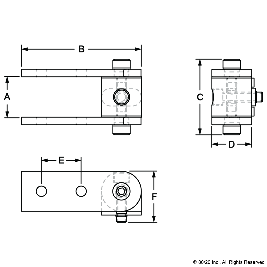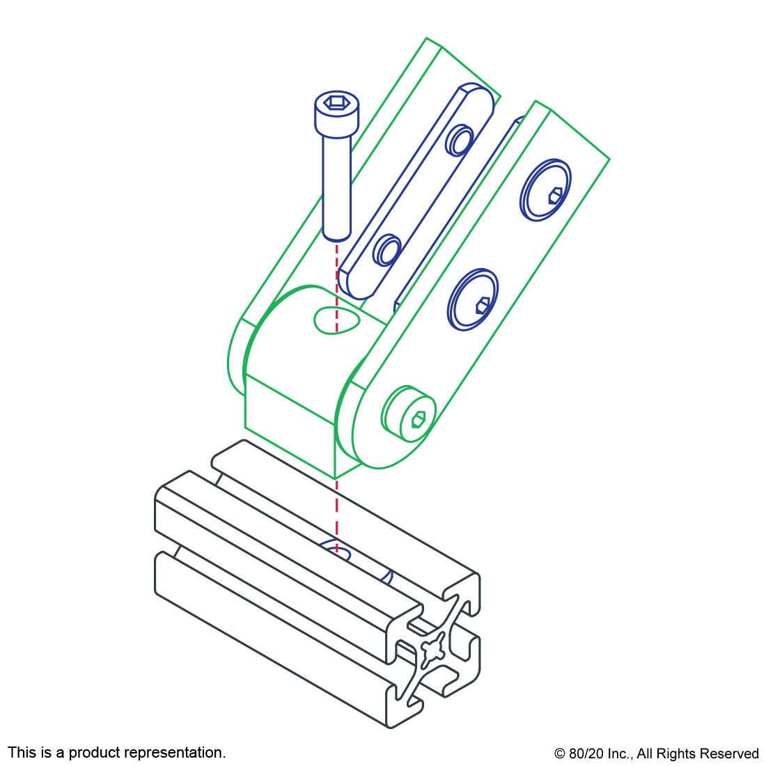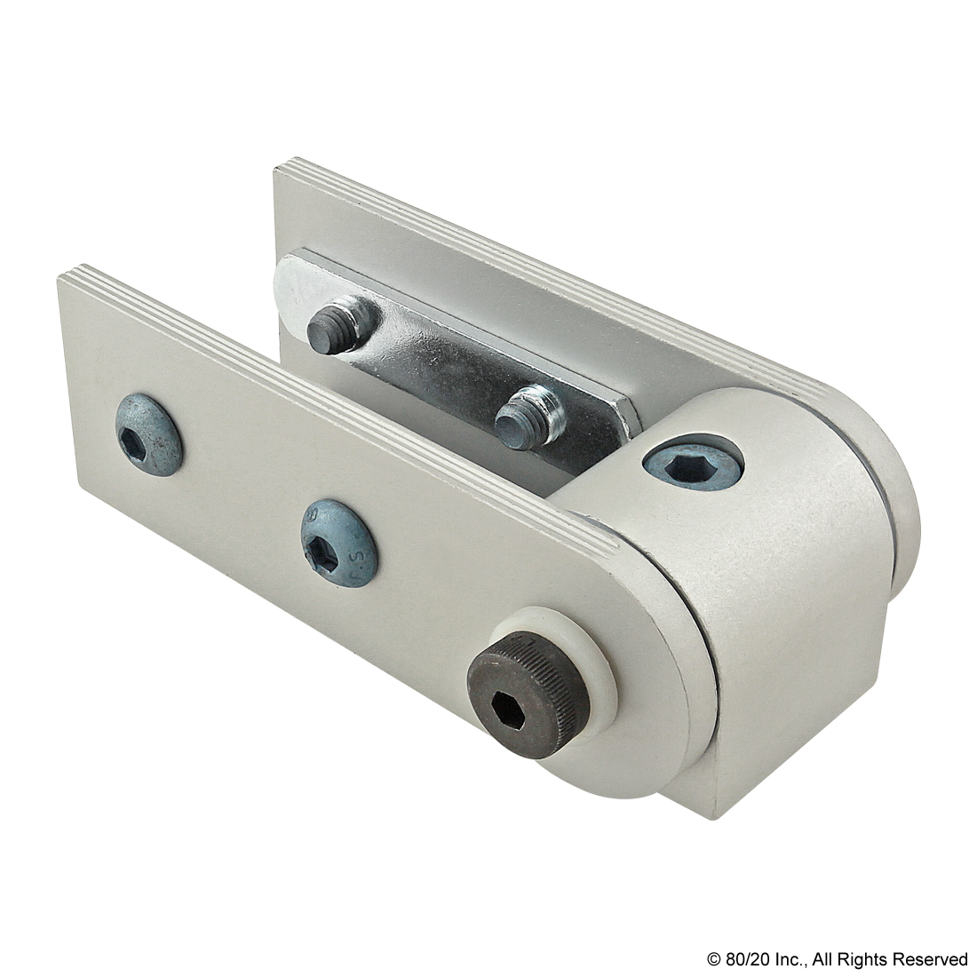 THE STANDARD 90 DEGREE DYNAMIC PIVOT ASSEMBLY WITH DUAL STRAIGHT ARMS IS TYPICALLY USED TO CREATE DYNAMIC PIVOTS THAT ARE PERPENDICULAR TO THE MOUNTING PROFILE AND HAVE FULL AXIAL MOTION RANGING FROM 0-180 DEGREES. THE ASSEMBLY INCLUDES ONE 90 DEGREE DYNAMIC PIVOT NUB AND TWO STANDARD STRAIGHT DYNAMIC PIVOT ARMS. IT HAS PERMANENTLY LUBRICATED BRONZE BUSHINGS THAT ACT AS HIGH-STRENGTH PIVOT POINTS AND NYLON THRUST WASHERS THAT PROTECT THE PIVOT ARMS. THIS ASSEMBLY OFFERS A HIGH LOAD CAPACITY WHILE ENSURING A LONG LIFE CYCLE. A SHIM KIT AND THE HARDWARE TO CONNECT THE NUB TO THE PROFILE, THE NUB TO THE ARMS, AND THE ARMS TO THE PROFILE ARE ALL INCLUDED.