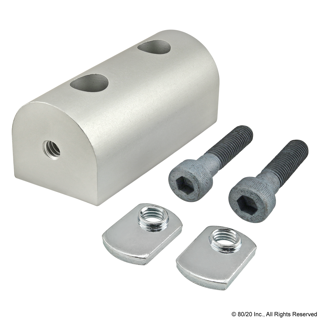 THE UNIVERSAL STRUCTURAL PIVOT NUB IS AN EXTERNAL FASTENING METHOD COMMONLY USED AS A CONNECTION HUB TO CREATE A STRUCTURAL PIVOT RANGING FROM 0-180 DEGREES EITHER PARALLEL OR PERPENDICULAR TO THE MOUNTING PROFILE. THE UNIVERSAL STRUCTURAL PIVOT NUB REQUIRES NO MACHINING SERVICES AND CAN BE EASILY ASSEMBLED, LENDING ITSELF TO REPOSITIONING AND REUSE. THE SUGGESTED MOUNTING HARDWARE CAN BE FOUND ON THE "SUGGESTED HARDWARE" TAB. ,