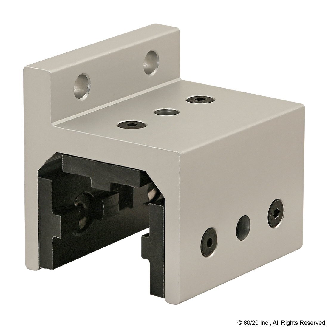 THE 3-SLOT MOUNT - SINGLE FLANGE SHORT HIGH-CYCLE LINEAR BEARING IS TYPICALLY USED IN LINEAR MOTION APPLICATIONS. IT CONTAINS SPECIAL THREADED INSERTS IN THE PADS WHICH PROVIDE A HEAVY-DUTY BEARING, WITH OR WITHOUT HOLES, CAPABLE OF WITHSTANDING REPETITIVE CYCLES WITH SUDDEN ACCELERATION AND DECELERATION. THE BEARING HOUSES PROFILES WITH A MINIMUM OF THREE OPEN T-SLOTS, HAS A SINGLE FLANGE AND IS A SHORTER OPTION. THE PADS, SCREWS AND SHIMS ARE INCLUDED; THE PADS ARE MADE OF SELF-LUBRICATING UHMW. ALL 80/20 BEARINGS ARE DESIGNED FOR COMPRESSION LOADS ONLY AND NOT INTENDED TO SUPPORT HANGING LOADS.