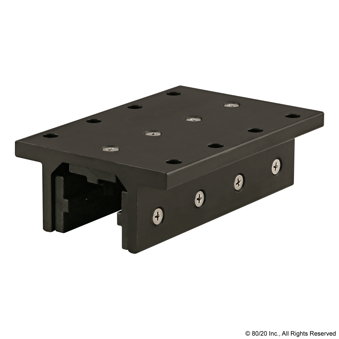THE 3-SLOT MOUNT - DOUBLE FLANGE LONG STANDARD LINEAR BEARING WITHOUT BRAKE HOLES IS TYPICALLY USED IN LINEAR MOTION APPLICATIONS. IT HOUSES PROFILES WITH A MINIMUM OF THREE OPEN T-SLOTS, HAS A DOUBLE FLANGE AND IS A LONGER OPTION. THE BEARING INCLUDES PADS, SCREWS AND SHIMS; THE PADS ARE MADE OF SELF-LUBRICATING UHMW. ALL 80/20 BEARINGS ARE DESIGNED FOR COMPRESSION LOADS ONLY AND NOT INTENDED TO SUPPORT HANGING LOADS.