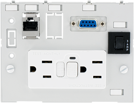 GFCI+1xRJ45 fem./fem.+1xSUB-D9 fem./male+1x3A fuse