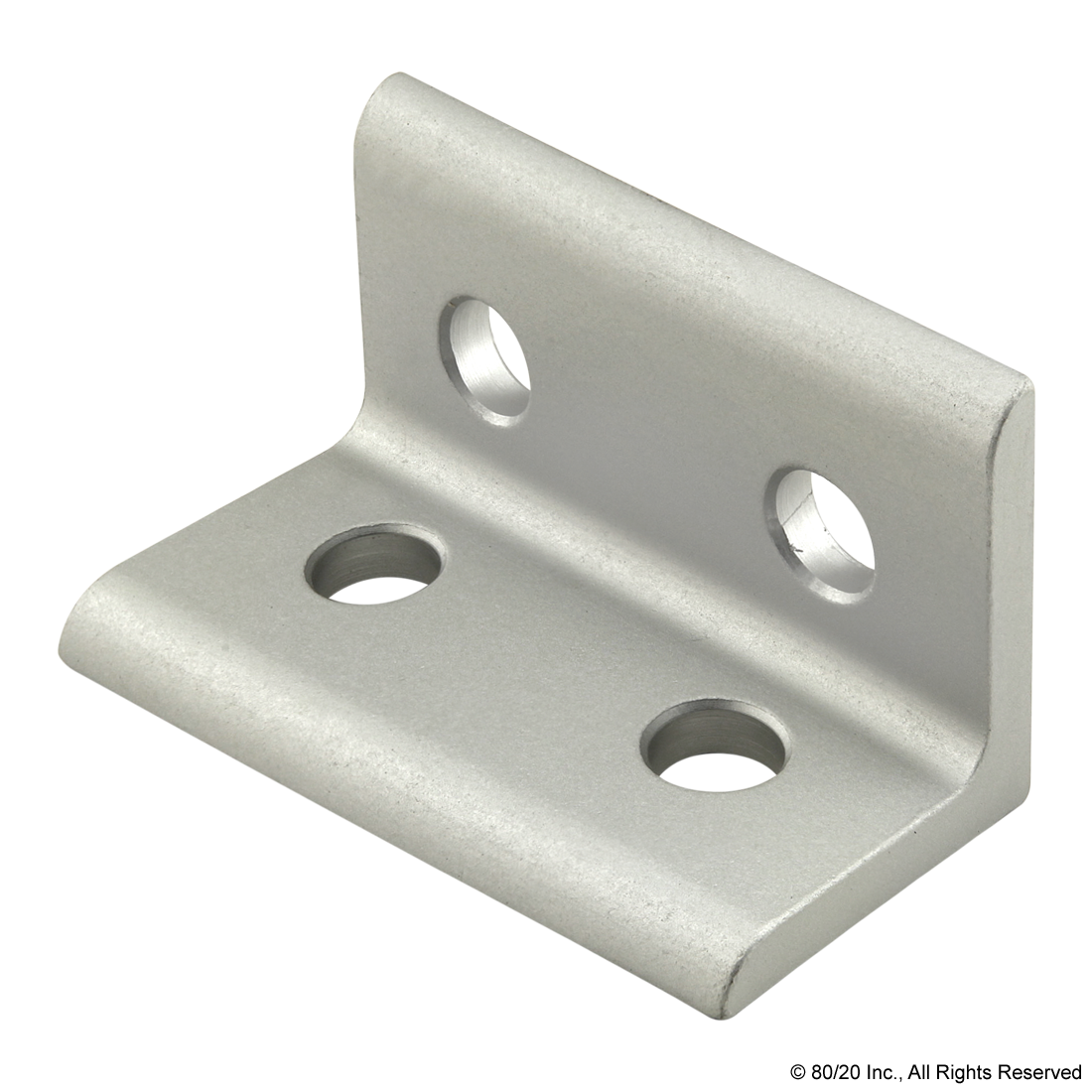 THE 4 HOLE - WIDE INSIDE CORNER BRACKET IS AN EXTERNAL FASTENING METHOD THAT CREATES A 90 DEGREE CONNECTION. THERE ARE TWO ADJACENT HOLES ON EACH SIDE OF THE BRACKET. THIS FASTENER REQUIRES NO MACHINING SERVICES AND CAN PROVIDE INFINITE POSITIONING ALONG THE PROFILE T-SLOT, ALLOWING A LARGE DEGREE OF ADJUSTABILITY. THE 4 HOLE - WIDE INSIDE CORNER BRACKET ENGAGES THE 2-DEGREE DROP-LOCK FEATURE WHEN THE ASSEMBLY BOLTS ARE TIGHTENED TO THE REQUIRED TORQUE. IT IS A FASTENING METHOD THAT CAN BE REPOSITIONED AND REUSED. THE SUGGESTED MOUNTING HARDWARE CAN BE FOUND ON THE "SUGGESTED HARDWARE" TAB. ,
