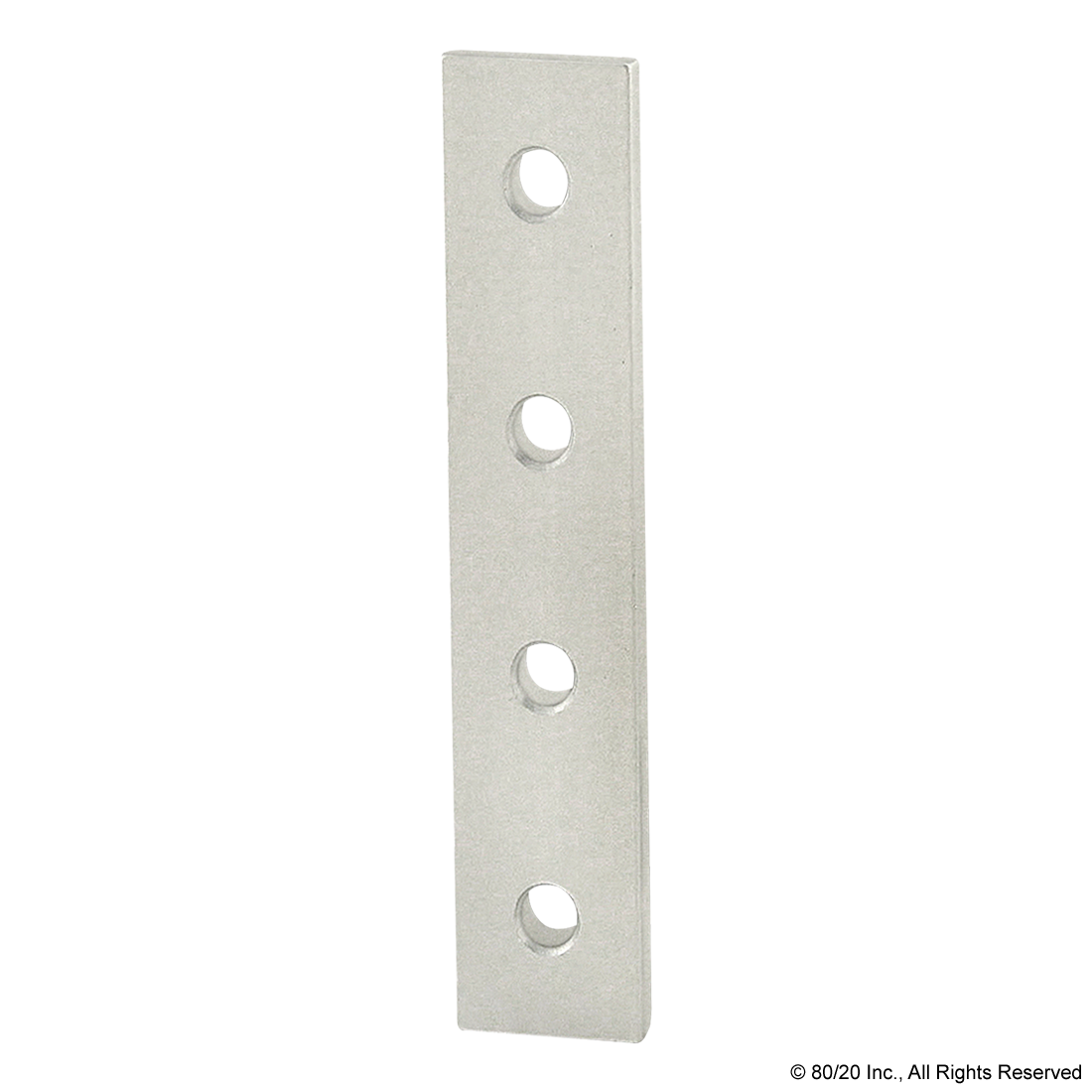 THE 4 HOLE - STRAIGHT FLAT PLATE IS AN EXTERNAL FASTENING METHOD THAT REQUIRES NO MACHINING SERVICES. IT IS A DURABLE CONNECTION THAT CAN BE EASILY REPOSITIONED AND REUSED. THIS FLAT PLATE CAN PROVIDE INFINITE POSITIONING ALONG THE PROFILE T-SLOT, ALLOWING FOR A LARGE DEGREE OF ADJUSTABILITY. IT ENGAGES THE 2-DEGREE DROP-LOCK FEATURE WHEN THE ASSEMBLY BOLTS ARE TIGHTENED TO THE REQUIRED TORQUE, CREATING A STRONG CONNECTION. TIP: USE A DOUBLE SLIDE-IN ECONOMY T-NUT TO SAVE TIME AND MONEY. PRE-LOAD YOUR HARDWARE PRIOR TO CONNECTING PROFILES TO SIMPLIFY YOUR ASSEMBLY.