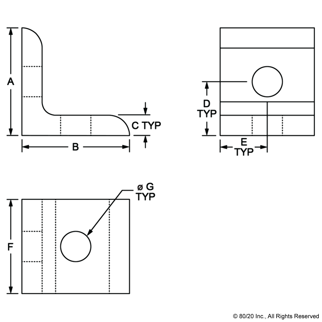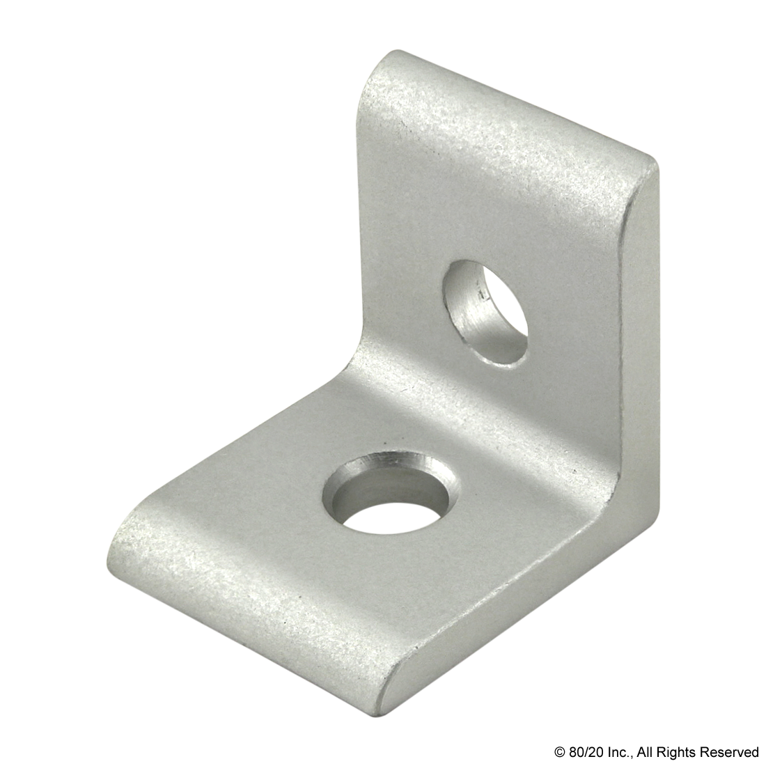 THE 2 HOLE - INSIDE CORNER BRACKET IS AN EXTERNAL FASTENING METHOD THAT CREATES A 90 DEGREE CONNECTION. IT REQUIRES NO MACHINING SERVICES AND CAN PROVIDE INFINITE POSITIONING ALONG THE PROFILE T-SLOT, ALLOWING A LARGE DEGREE OF ADJUSTABILITY. THE 2 HOLE - INSIDE CORNER BRACKET ENGAGES THE 2-DEGREE DROP-LOCK FEATURE WHEN THE ASSEMBLY BOLTS ARE TIGHTENED TO THE REQUIRED TORQUE. IT IS A FASTENING METHOD THAT CAN BE REPOSITIONED AND REUSED. THE SUGGESTED MOUNTING HARDWARE CAN BE FOUND ON THE "SUGGESTED HARDWARE" TAB. ,