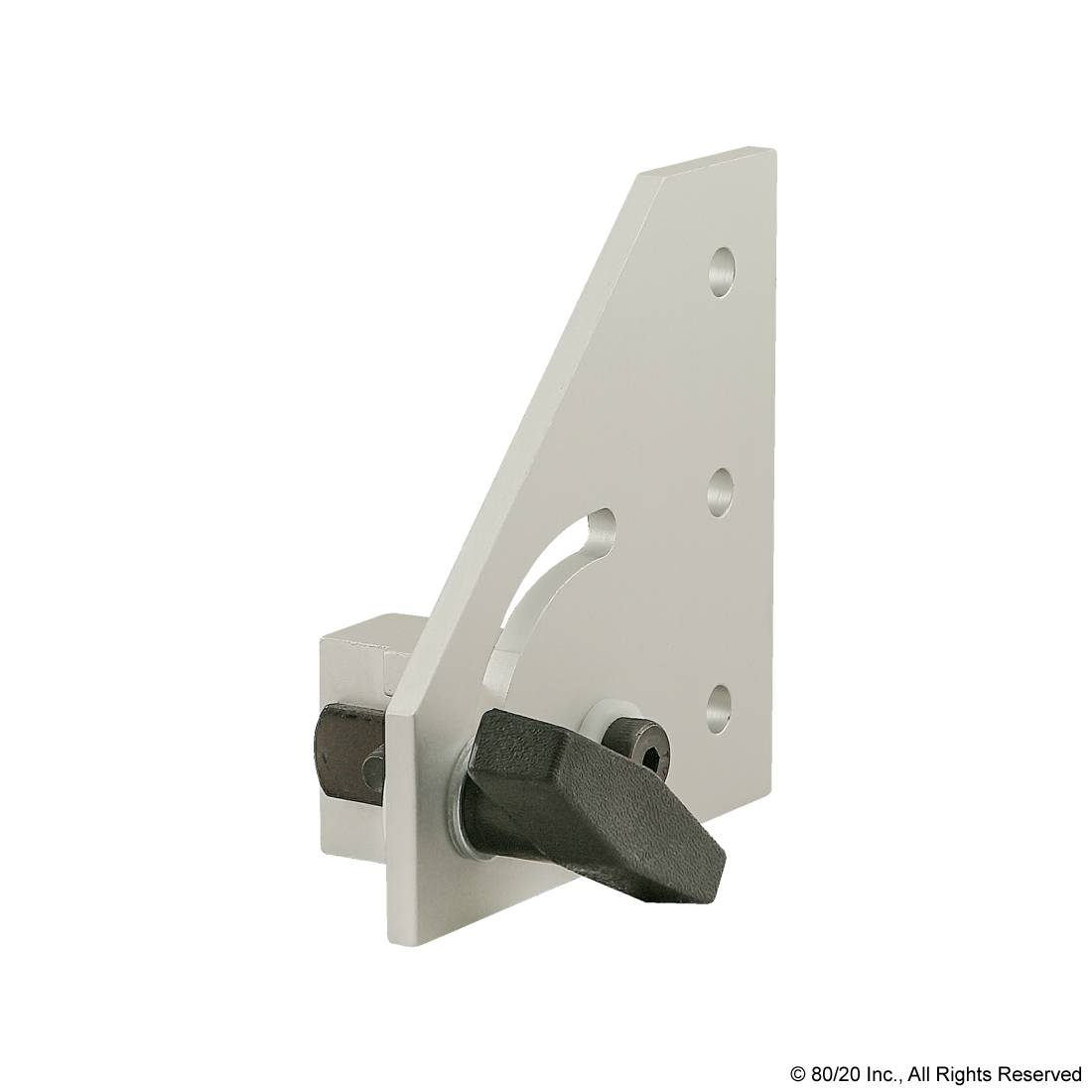 THE 90 DEGREE LEFT HAND PIVOT BRACKET ASSEMBLY WITH €œT" HANDLE IS COMMONLY USED TO ADD MOTION TO CERTAIN ELEMENTS OF YOUR PROJECT. IT IS COMPRISED OF ONE 90 DEGREE LEFT HAND PIVOT BRACKET, ONE €œT€ HANDLE, AND ONE 0 DEGREE STRUCTURAL PIVOT NUB. THE SHOULDER BOLT AND NYLON THRUST WASHERS ARE ALSO INCLUDED. THE BRACKET HAS A PERMANENTLY LUBRICATED BRONZE BUSHING THAT ACTS AS HIGH-STRENGTH PIVOT POINT. IT OFFERS A HIGH LOAD CAPACITY WHILE ENSURING A LONG LIFE CYCLE.