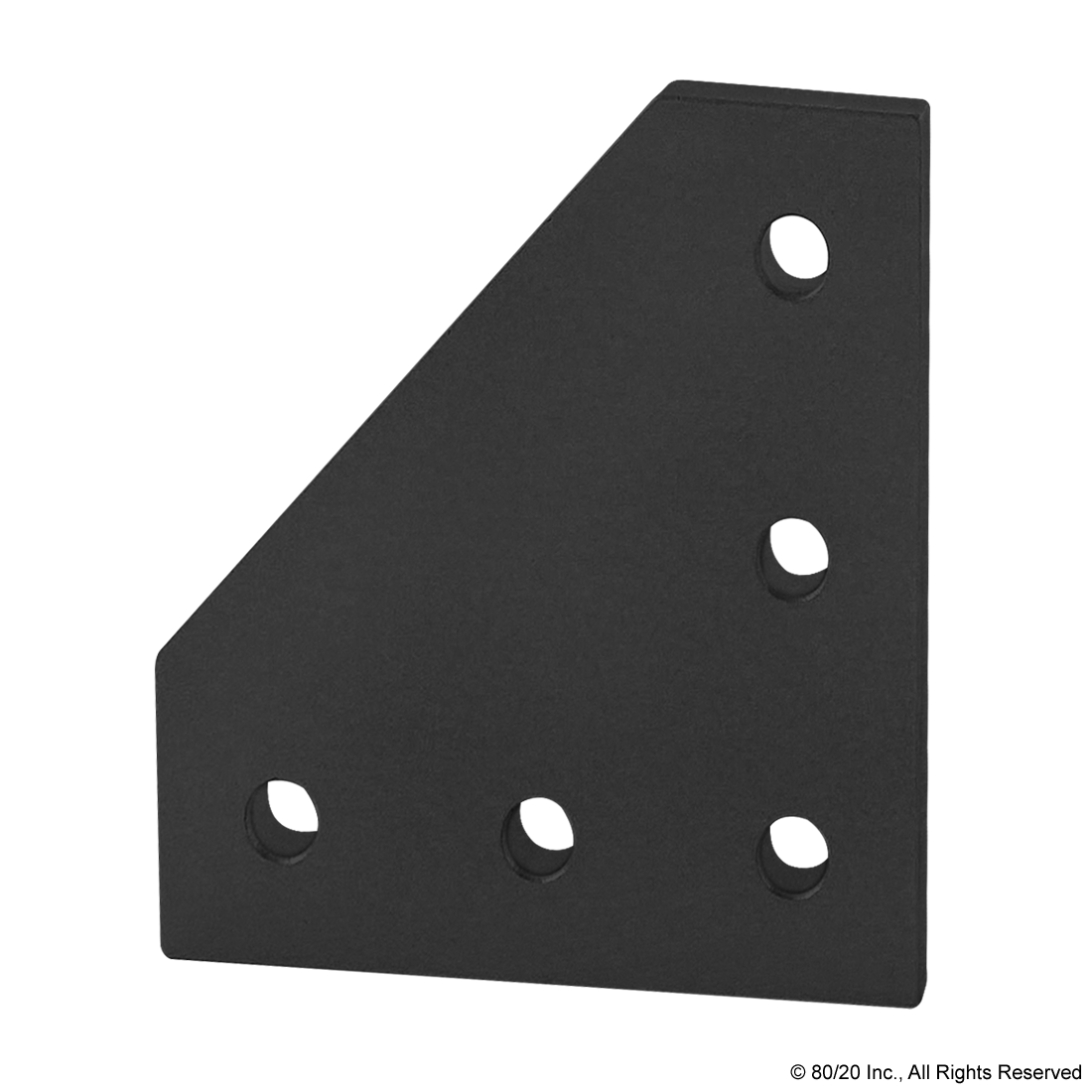 THE 5 HOLE - 90 DEGREE ANGLED FLAT PLATE IS AN EXTERNAL FASTENING METHOD THAT REQUIRES NO MACHINING SERVICES. THIS FLAT PLATE CREATES A 90-DEGREE ANGLE BETWEEN PROFILES AND ITS SHAPE REINFORCES THE STRENGTH OF THE CONNECTION. IT IS A DURABLE OPTION THAT IS EASY TO ASSEMBLE AND CAN BE RECONFIGURED AND REUSED. THE SUGGESTED MOUNTING HARDWARE CAN BE FOUND ON THE "SUGGESTED HARDWARE" TAB. TIP: USE DOUBLE OR TRIPLE SLIDE-IN ECONOMY T-NUTS TO SAVE TIME AND MONEY. PRE-LOAD YOUR HARDWARE PRIOR TO CONNECTING PROFILES TO SIMPLIFY YOUR ASSEMBLY.