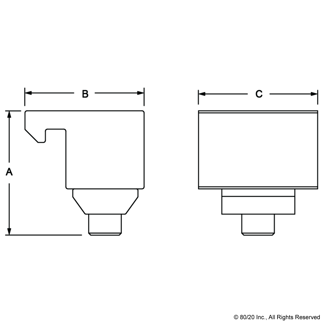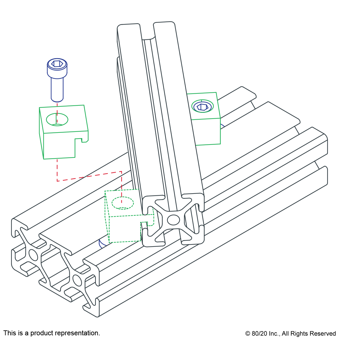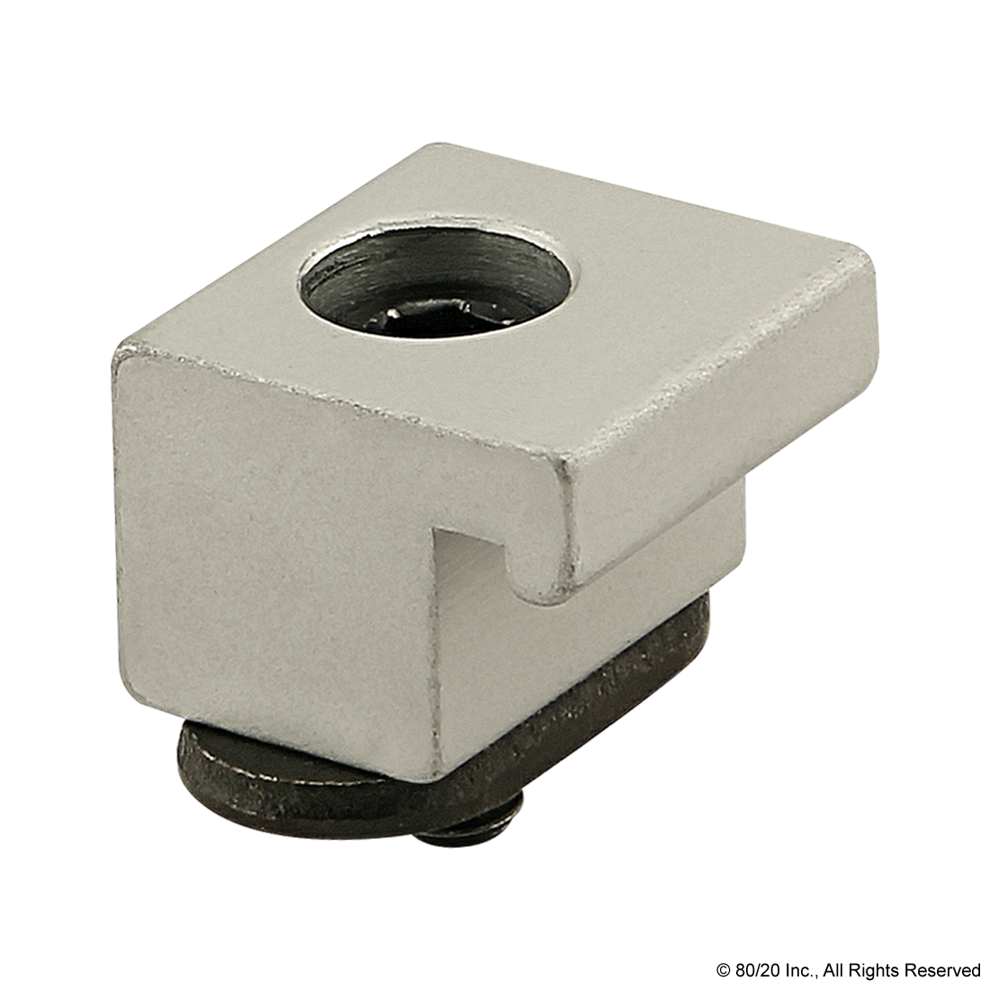 THE STANDARD ANGLE CLAMP BLOCK IS TYPICALLY MOUNTED TO THE T-SLOT. THE TAB GRIPS INTO THE MATING PROFILE TO HELP ALIGN AND HOLD THE CLAMP, ENABLING ADJUSTMENTS AND A RANGE OF VARIOUS ANGLES. THE STANDARD ANGLE CLAMP BLOCK IS SOLD IN PAIRS AND REQUIRES NO MACHINING SERVICES.THE MOUNTING HARDWARE IS INCLUDED AND CAN BE FOUND ON THE "INCLUDED HARDWARE" TAB.,