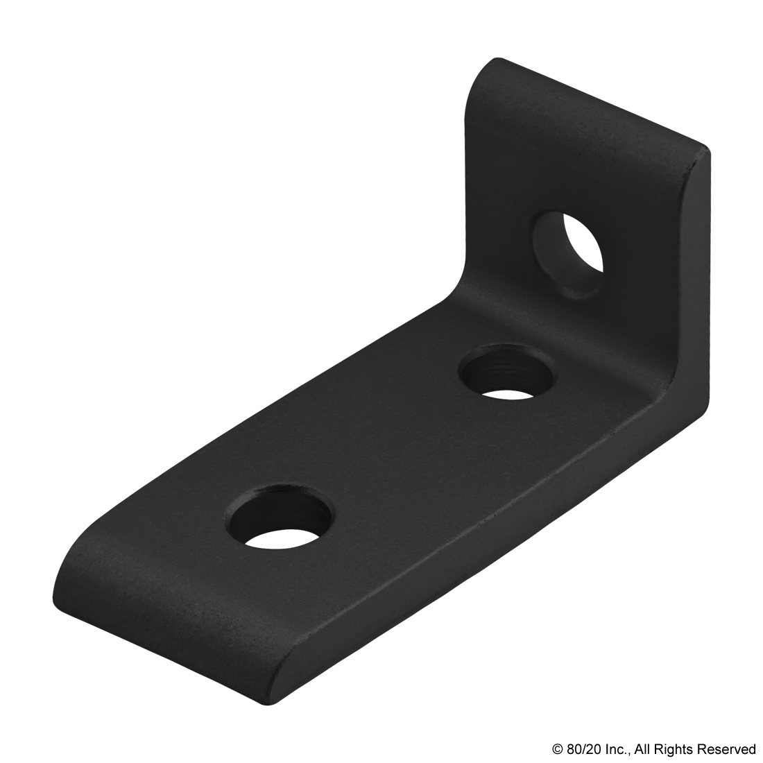 THE 3 HOLE - INSIDE CORNER BRACKET IS AN EXTERNAL FASTENING METHOD THAT CREATES A 90 DEGREE CONNECTION. THERE ARE TWO STACKED HOLES ON ONE SIDE AND ONE HOLE ON THE OPPOSITE SIDE OF THE BRACKET. THIS FASTENER REQUIRES NO MACHINING SERVICES AND CAN PROVIDE INFINITE POSITIONING ALONG THE PROFILE T-SLOT, ALLOWING A LARGE DEGREE OF ADJUSTABILITY. THE 3 HOLE - INSIDE CORNER BRACKET ENGAGES THE 2-DEGREE DROP-LOCK FEATURE WHEN THE ASSEMBLY BOLTS ARE TIGHTENED TO THE REQUIRED TORQUE. IT IS A FASTENING METHOD THAT CAN BE REPOSITIONED AND REUSED. THE SUGGESTED MOUNTING HARDWARE CAN BE FOUND ON THE "SUGGESTED HARDWARE" TAB. ,