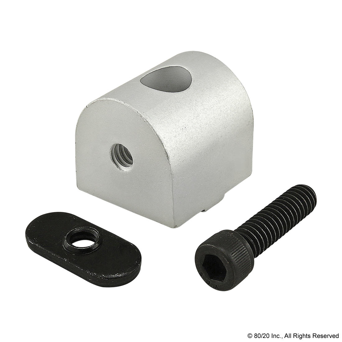 THE 0 DEGREE DYNAMIC PIVOT NUB IS COMMONLY USED AS A CONNECTION HUB FOR DYNAMIC PIVOTS TO CREATE FULL AXIAL MOTION RANGING FROM 0-180 DEGREES PARALLEL TO THE MOUNTING PROFILE. THE 0 DEGREE DYNAMIC PIVOT NUB REQUIRES NO MACHINING SERVICES AND CAN BE EASILY ASSEMBLED, LENDING ITSELF TO REPOSITIONING AND REUSE. THE HARDWARE TO MOUNT THE NUB TO A PROFILE IS INCLUDED. THE SUGGESTED MOUNTING HARDWARE TO ATTACH THE ARM TO THE NUB CAN BE FOUND ON THE "SUGGESTED HARDWARE" TAB.,