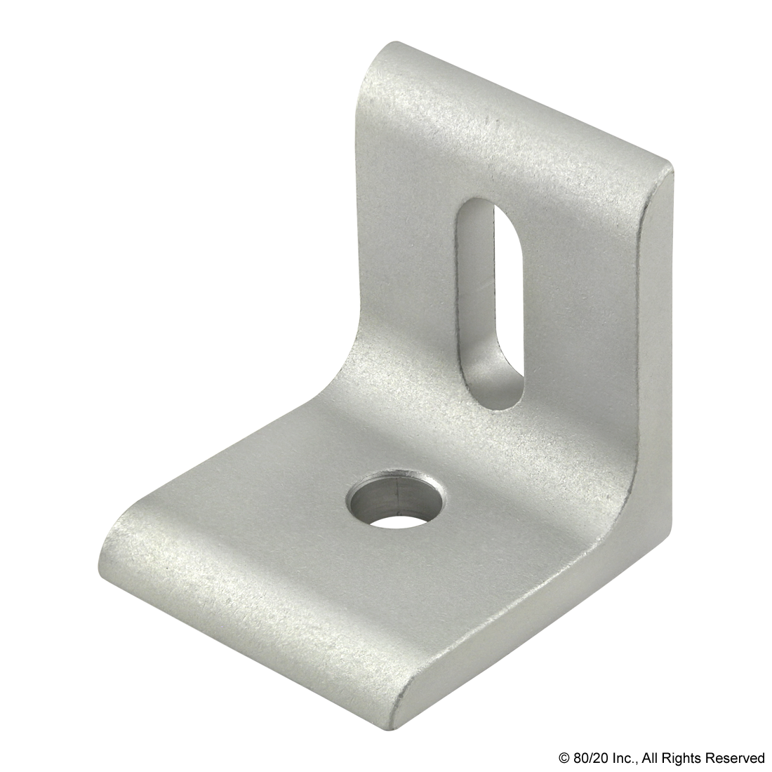 THE 2 HOLE - SLOTTED INSIDE CORNER BRACKET IS AN EXTERNAL FASTENING METHOD THAT CREATES A 90 DEGREE CONNECTION. THE SLOTTED HOLE ALLOWS FOR GREATER ADJUSTABILITY BETWEEN THE CONNECTING PROFILES. THIS BRACKET REQUIRES NO MACHINING SERVICES AND CAN PROVIDE INFINITE POSITIONING ALONG THE PROFILE T-SLOT. THE 2 HOLE - SLOTTED INSIDE CORNER BRACKET ENGAGES THE 2-DEGREE DROP-LOCK FEATURE WHEN THE ASSEMBLY BOLTS ARE TIGHTENED TO THE REQUIRED TORQUE. IT IS A FASTENING METHOD THAT CAN BE REPOSITIONED AND REUSED. THE SUGGESTED MOUNTING HARDWARE CAN BE FOUND ON THE "SUGGESTED HARDWARE" TAB.