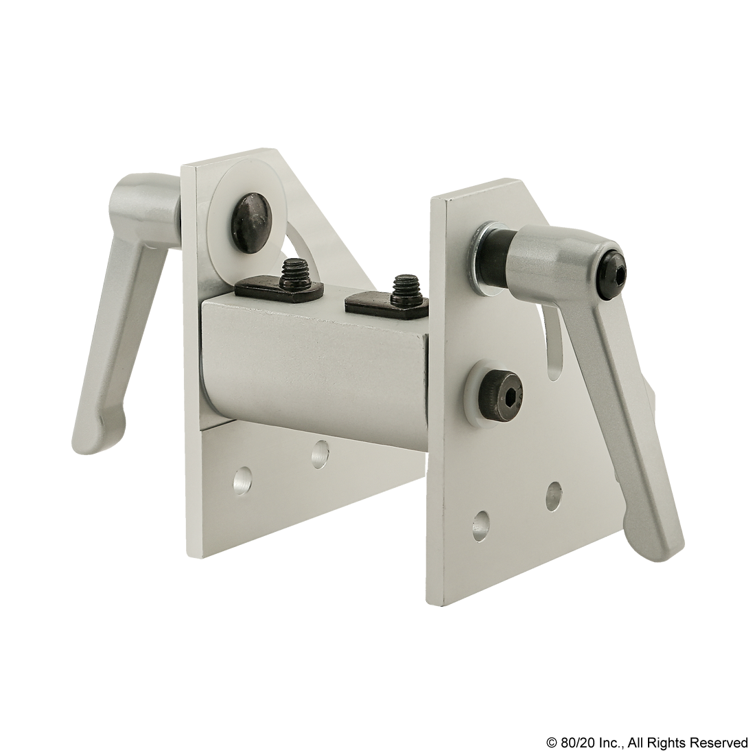 THE 90 DEGREE WIDE DOUBLE PIVOT BRACKET ASSEMBLY WITH €œL" HANDLES IS COMMONLY USED TO ADD MOTION TO CERTAIN ELEMENTS OF YOUR PROJECT. IT IS COMPRISED OF ONE 90 DEGREE LEFT HAND PIVOT BRACKET, ONE 90 DEGREE RIGHT HAND PIVOT BRACKET, TWO €œL€ HANDLES, AND ONE UNIVERSAL STRUCTURAL PIVOT NUB. THE SHOULDER BOLT AND NYLON THRUST WASHERS ARE ALSO INCLUDED. THE BRACKETS HAVE PERMANENTLY LUBRICATED BRONZE BUSHINGS THAT ACT AS HIGH-STRENGTH PIVOT POINTS. IT OFFERS A HIGH LOAD CAPACITY WHILE ENSURING A LONG LIFE CYCLE.,