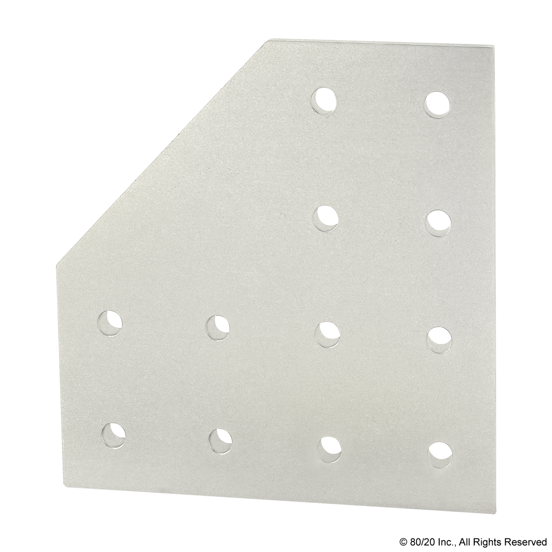 THE 12 HOLE - 90 DEGREE ANGLED FLAT PLATE IS AN EXTERNAL FASTENING METHOD THAT REQUIRES NO MACHINING SERVICES. THIS FLAT PLATE CREATES A 90-DEGREE ANGLE BETWEEN PROFILES AND ITS SHAPE REINFORCES THE STRENGTH OF THE CONNECTION. IT IS A DURABLE OPTION THAT IS EASY TO ASSEMBLE AND CAN BE RECONFIGURED AND REUSED. THE SUGGESTED MOUNTING HARDWARE CAN BE FOUND ON THE "SUGGESTED HARDWARE" TAB. TIP: USE DOUBLE OR TRIPLE SLIDE-IN ECONOMY T-NUTS TO SAVE TIME AND MONEY. PRE-LOAD YOUR HARDWARE PRIOR TO CONNECTING PROFILES TO SIMPLIFY YOUR ASSEMBLY.