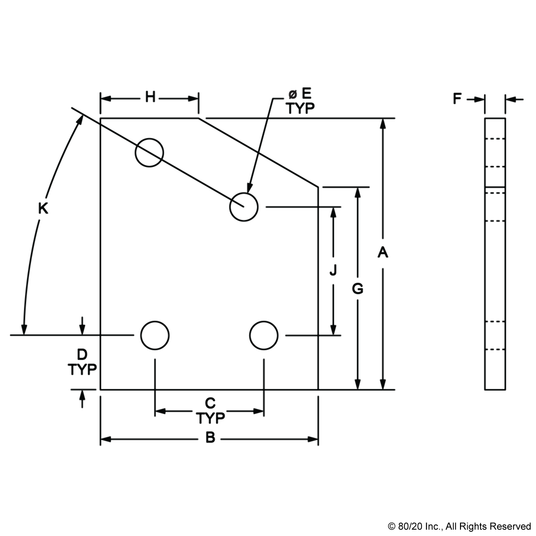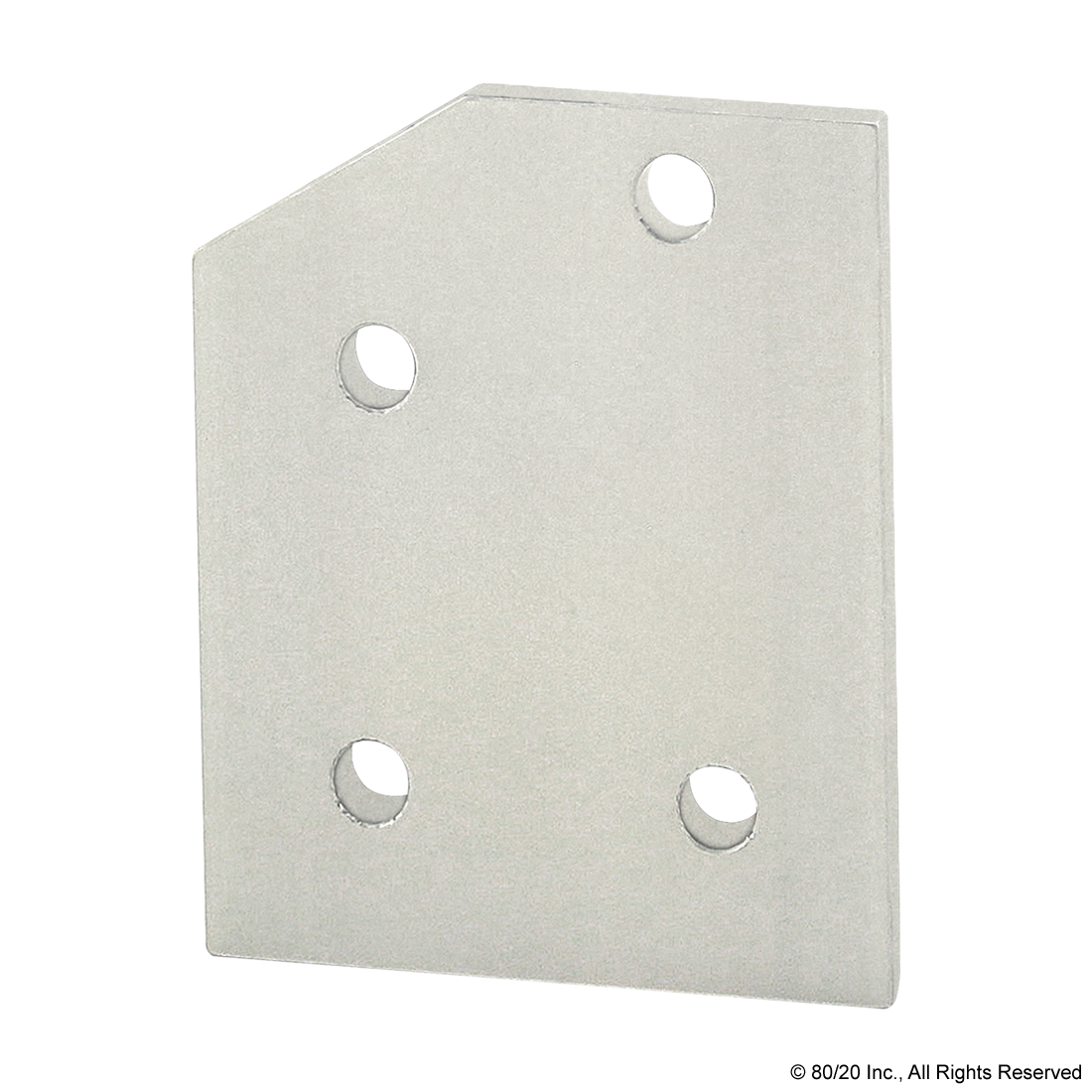 THE 4 HOLE - 30 DEGREE ANGLED FLAT PLATE IS AN EXTERNAL FASTENING METHOD THAT REQUIRES NO MACHINING SERVICES. THIS FLAT PLATE CREATES A 30 DEGREE ANGLE BETWEEN PROFILES AND ITS SHAPE REINFORCES THE STRENGTH OF THE CONNECTION. IT IS A DURABLE OPTION THAT IS EASY TO ASSEMBLE AND CAN BE RECONFIGURED AND REUSED. THE SUGGESTED MOUNTING HARDWARE CAN BE FOUND ON THE "SUGGESTED HARDWARE" TAB. TIP: USE A DOUBLE SLIDE-IN ECONOMY T-NUT TO SAVE TIME AND MONEY. PRE-LOAD YOUR HARDWARE PRIOR TO CONNECTING PROFILES TO SIMPLIFY YOUR ASSEMBLY.