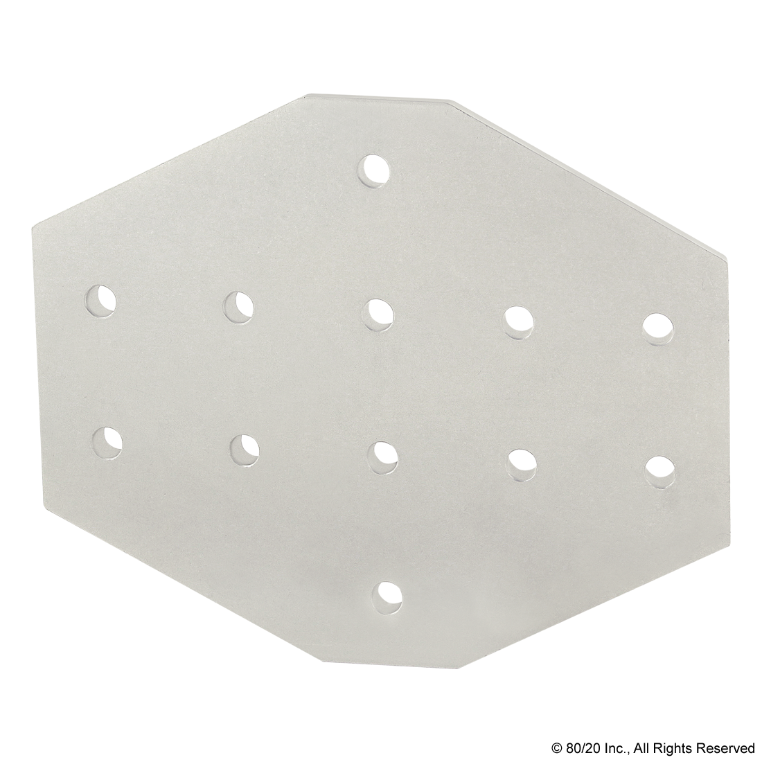 THE 12 HOLE - CROSS FLAT PLATE IS AN EXTERNAL FASTENING METHOD THAT CAN BE USED TO JOIN MORE THAN TWO PROFILES OR EVEN CREATE A 4-WAY CONNECTION HUB. IT PROVIDES A STRONG, LONG-LASTING CONNECTION THAT IS EASY TO ASSEMBLE AND REQUIRES NO MACHINING SERVICES. THE 12 HOLE - CROSS FLAT PLATE IS DURABLE AND CAN BE REPOSITIONED AND REUSED. THE SUGGESTED MOUNTING HARDWARE CAN BE FOUND ON THE "SUGGESTED HARDWARE" TAB. TIP: USE DOUBLE OR TRIPLE SLIDE-IN ECONOMY T-NUTS TO SAVE TIME AND MONEY. PRE-LOAD YOUR HARDWARE PRIOR TO CONNECTING PROFILES TO SIMPLIFY YOUR ASSEMBLY.,