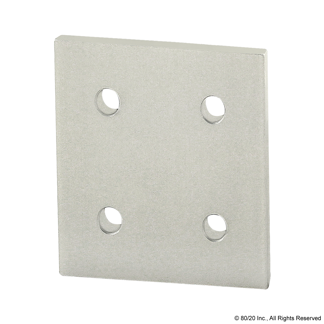 THE 4 HOLE - SQUARE FLAT PLATE IS AN EXTERNAL FASTENING METHOD THAT REQUIRES NO MACHINING SERVICES. IT IS A DURABLE CONNECTION THAT CAN BE REPOSITIONED AND REUSED. THIS CONNECTION CAN PROVIDE INFINITE POSITIONING ALONG THE PROFILE T-SLOT, ALLOWING FOR A LARGE DEGREE OF ADJUSTABILITY. THE 4 HOLE - SQUARE FLAT PLATE ENGAGES THE 2-DEGREE DROP-LOCK FEATURE WHEN THE ASSEMBLY BOLTS ARE TIGHTENED TO THE REQUIRED TORQUE, CREATING A STRONG CONNECTION. TIP: USE A DOUBLE SLIDE-IN ECONOMY T-NUT TO SAVE TIME AND MONEY. PRE-LOAD YOUR HARDWARE PRIOR TO CONNECTING PROFILES TO SIMPLIFY YOUR ASSEMBLY.