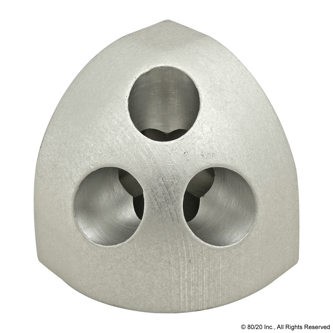 THE 3 WAY - ROUNDED CORNER CONNECTOR IS AN EXTERNAL FASTENING METHOD THAT IS TYPICALLY USED TO CREATE A CURVED CORNER CONNECTION BETWEEN QUARTER ROUND PROFILES. IT IS A HEAVY-DUTY CONNECTION THAT IS SIMPLE TO USE AND PROVIDES A FINISHED APPEARANCE WHILE THE ROUNDED CORNER PREVENTS SHARP EDGES. THE 3 WAY - ROUNDED CORNER CONNECTOR REQUIRES AN END TAP MACHINING SERVICE ON THE MATING PROFILES. THE SUGGESTED HARDWARE CAN BE FOUND ON THE "SUGGESTED HARDWARE" TAB.