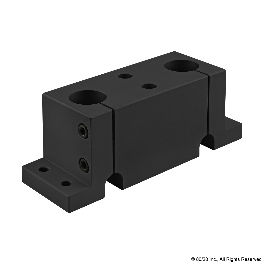 THE DOUBLE SHAFT STANCHION BASE IS COMMONLY USED WITH THE ALUMINUM TUBE PROFILE TO CREATE TWO ADDITIONAL AXES. TUBES CONNECT PARALLEL TO THE MOUNTED BASE, AND THERE ARE CLEARANCE CHANNELS FOR RUNNING WIRE OR CABLES. THE STANCHION IS ALUMINUM, MAKING IT A STRONG AND DURABLE OPTION. CLAMP SCREWS ARE INCLUDED. THE SUGGESTED HARDWARE TO MOUNT THE BASE TO A T-SLOT CAN BE FOUND ON THE "SUGGESTED HARDWARE" TAB.
