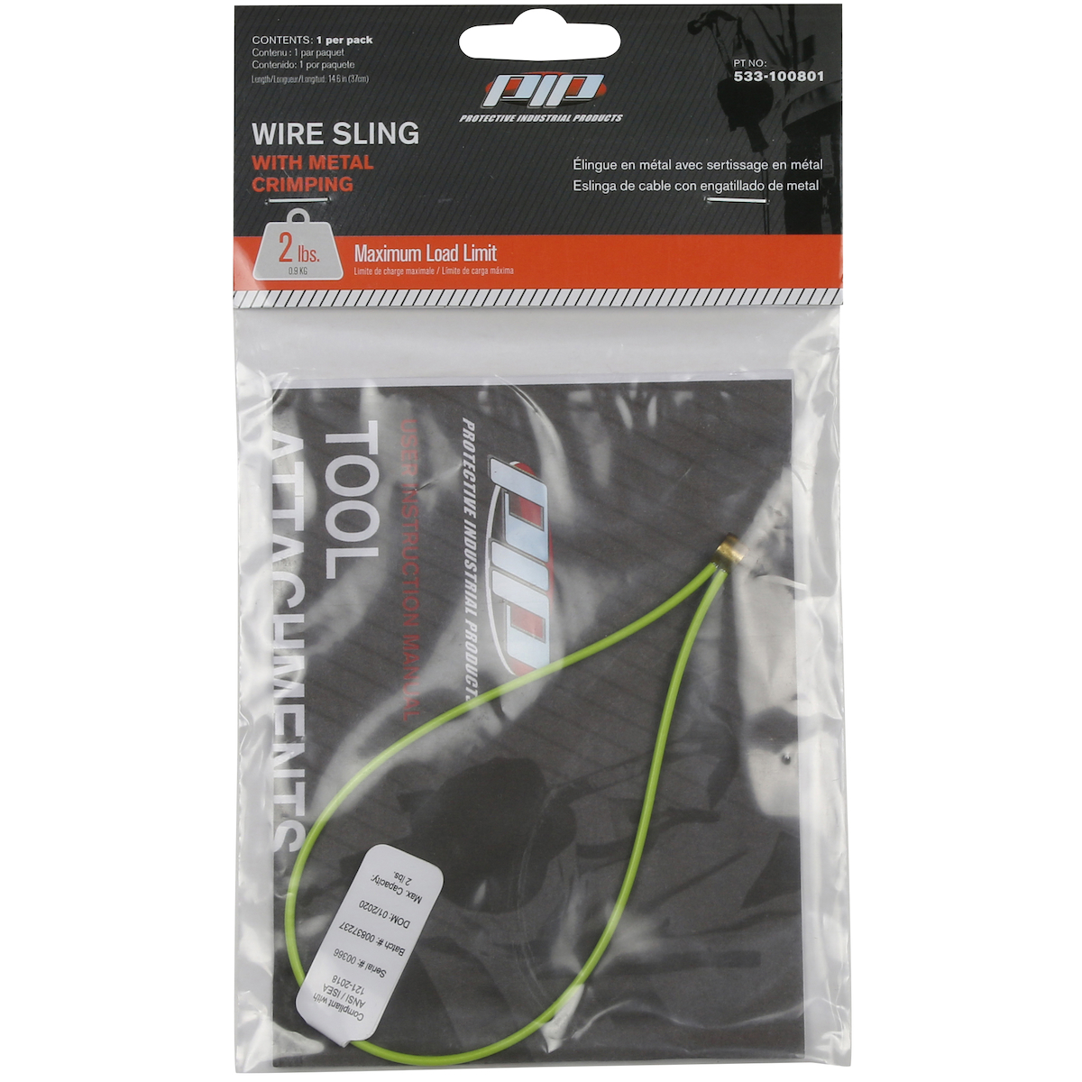 - Brand: PIP®Case qty: 6Case uom: eaCategory: Fall ProtectionColor: RedFeatures: Loop End to Tether Tools with Small Captive Holes|Premium Coated Stainless Steel Cable Wire|Each item is Retail-Ready, individually packaged in a polybag with a hang tagGrouping: Tool TetheringSegment: Attachment PointsSize: OSSizes: --OS--Specs: Coated Stainless Steel Cable Max Load Limit 2 lbs.Style: 533-100801