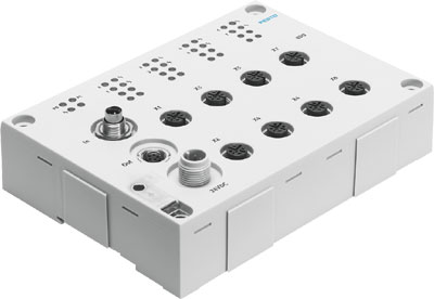 OUTPUT MODULE CP-A08-M12-EL-Z WITH AN EXTERNAL LOAD VOLTAGE CONNECTION. LED DISPLAYS=(* 3 MODULE DIAGNOSTICS, * 8 CHANNEL DIAGNOSTICS, * 8 CHANNEL STATUS), PROTECTION (SHORT CIRCUIT)=INTERNAL ELECTRONIC FUSE PROTECTION FOR EACH GROUP, DC OPERATING VOLTAGE, LOAD VOLTAGE=24 V, OPERATING VOLTAGE RANGE DC=18 - 30 V, NOTE REGARDING LOAD VOLTAGE=VIA LOAD VOLTAGE CONNECTION (24 V DC)