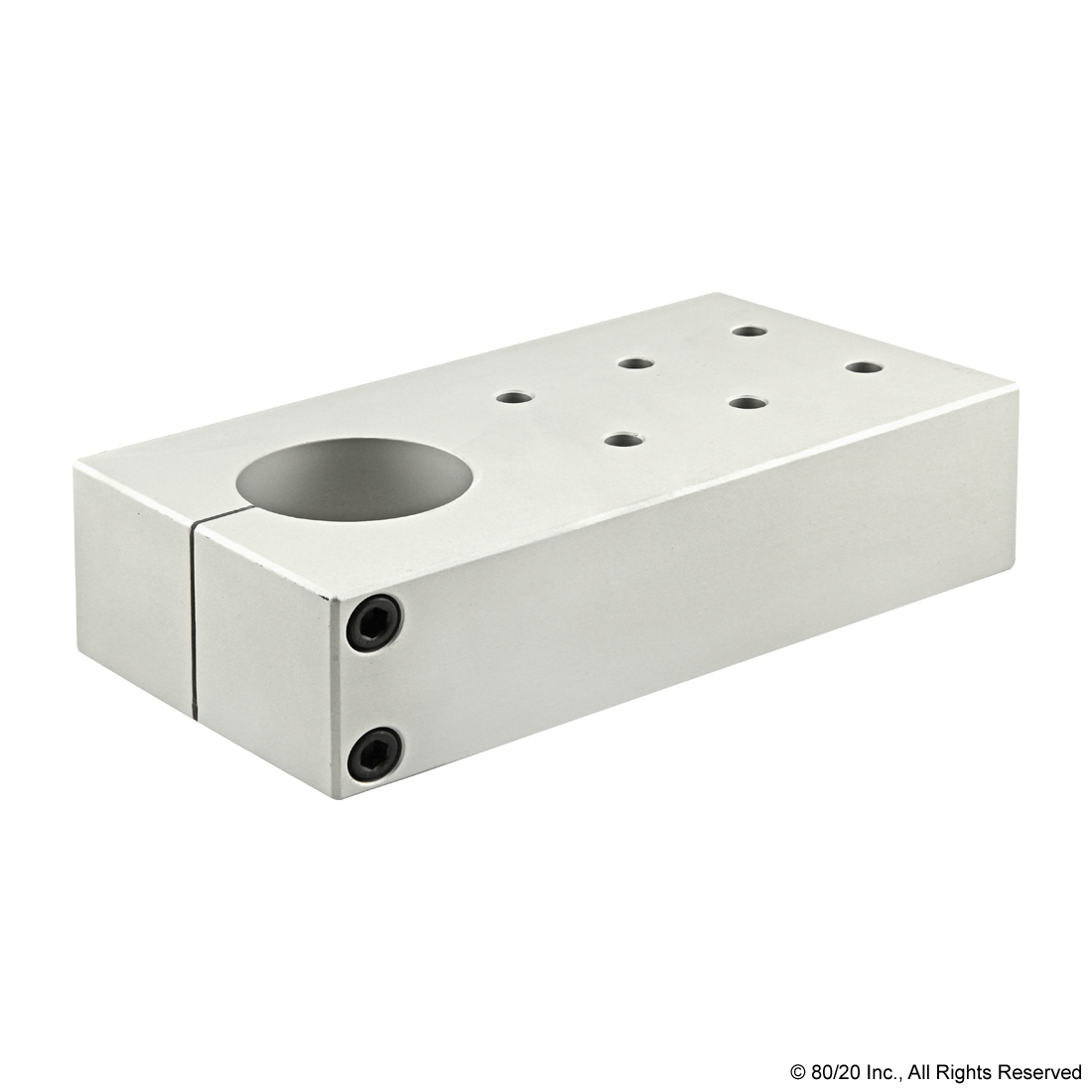 THE SINGLE SHAFT PRE-DRILLED STANCHION MOUNTING PLATE IS COMMONLY USED WITH THE ALUMINUM TUBE PROFILE TO CREATE AN OFFSET AXIS. THE TUBE CONNECTS PERPENDICULAR TO THE MOUNTED BASE TO FORM THE STANCHION.THE PLATE IS ALUMINUM, MAKING IT A STRONG AND DURABLE OPTION. CLAMP SCREWS ARE INCLUDED. THE SUGGESTED HARDWARE TO MOUNT THE BASE TO A T-SLOT CAN BE FOUND ON THE "SUGGESTED HARDWARE" TAB.,