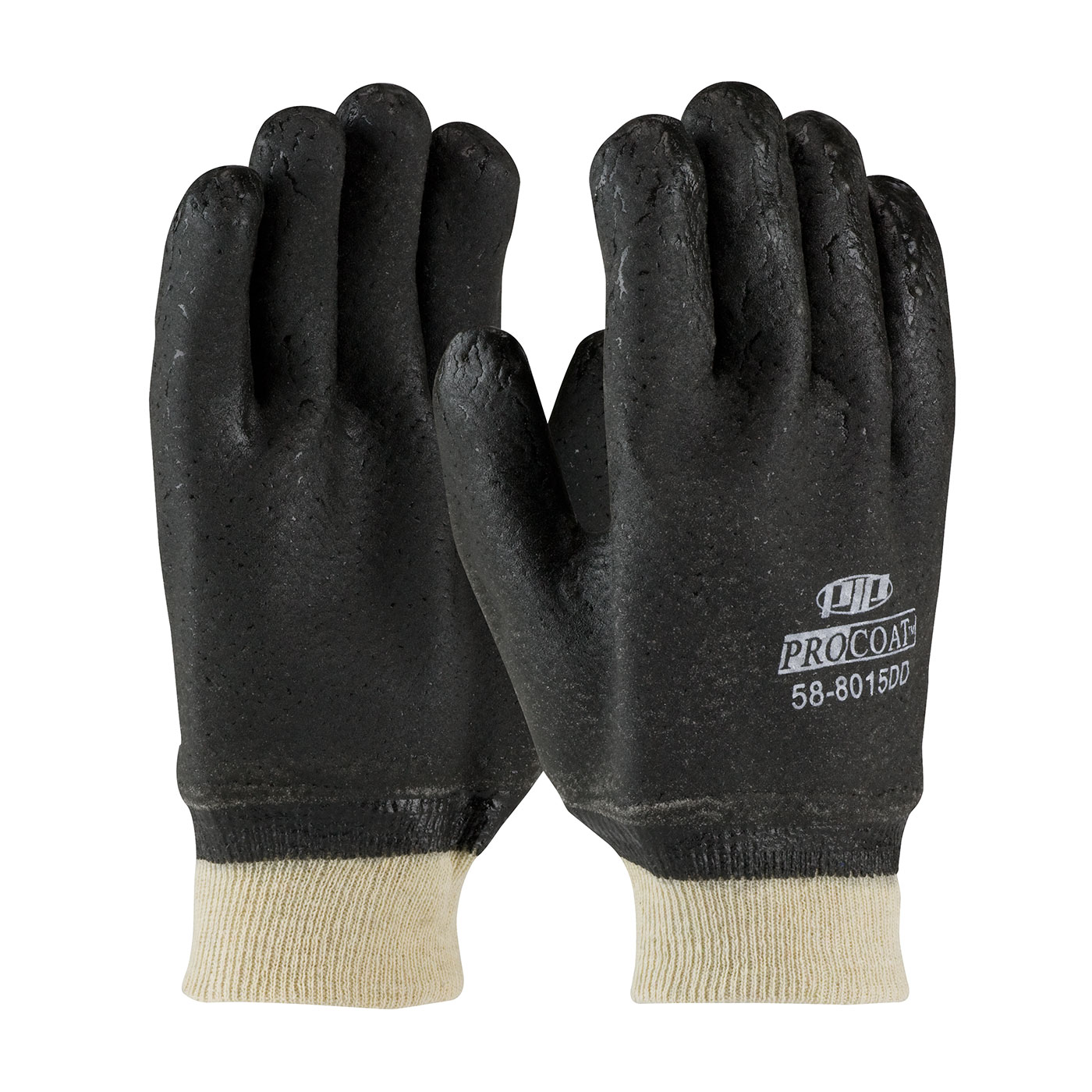 - Brand: ProCoat®Case qty: 72Case uom: prCategory: Hand ProtectionCoating: PVCCoating color: BlackCoating coverage: Full HandColor: NaturalConstruction: --Cut-and-Sewn--Cuff: Knit WristDip: DoubleEn388: 4121En388 2016: 4121XEn388 a: 4En388 c: 1En388 i: XEn388 p: 1En388 t: 2Features: Coating has superior wet grip|Jersey lined for comfort and moderate insulation|Double dipped for enhanced liquid protection and extended wear|Black color hides dirt|Knit Wrist helps prevent dirt and debris from entering the gloveGrip: Rough AcidGrouping: Chemical ResistantLength: 10Liner material: --Jersey--Lining: JerseyPolymer: PVCSegment: Coated Supported GlovesSize: MENSSizes: --MENS--Specs: ProCoat| Jersey Lined| PVC dipped| Black| Rough Acid Finish| KnitwristStyle: 58-8015DD