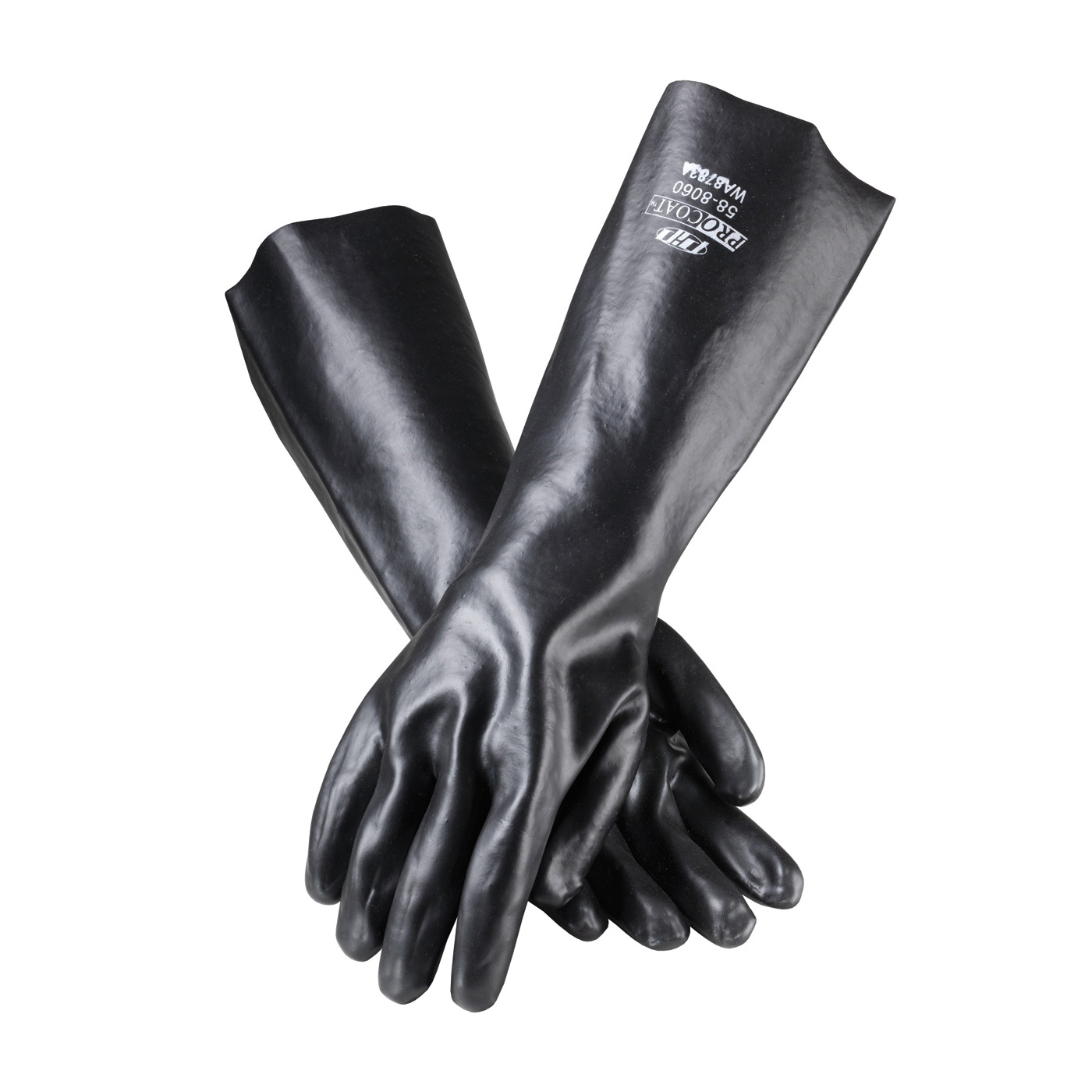 - Brand: ProCoat®Case qty: 72Case uom: prCategory: Hand ProtectionColor: BlackConstruction: --Supported--Cuff: StraightDip: SingleEn388: 4121En388 2016: 4121XEn388 a: 4En388 c: 1En388 i: XEn388 p: 1En388 t: 2Features: Interlock lining dries quickly, sheds little lint and offers great dexterity|Black color styles hide dirt|Single dip construction|Straight cuff adds additional length to protect the forearm from liquid run-offGrip: SmoothGrouping: Chemical ResistantLength: 18Liner material: --Interlock--Lining: InterlockPolymer: PVCSegment: Coated Supported GlovesSize: MENSSizes: --MENS--Specs: ProCoat| Interlock Lined| PVC Dipped| Black| 18-inch Length| Smooth FinishStyle: 58-8060