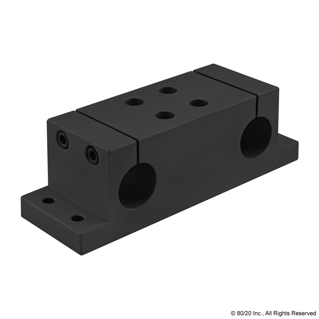 THE DOUBLE SHAFT STANCHION MOUNTING BLOCK IS COMMONLY USED WITH THE ALUMINUM TUBE PROFILE TO CREATE TWO ADDITIONAL AXES. TUBES CONNECT PARALLEL TO THE MOUNTED BASE TO FORM THE STANCHIONS.THE BLOCK IS ALUMINUM, MAKING IT A STRONG AND DURABLE OPTION. CLAMP SCREWS ARE INCLUDED. SUGGESTED HARDWARE TO MOUNT THE BASE TO A T-SLOT CAN BE FOUND ON THE "SUGGESTED HARDWARE" TAB.,