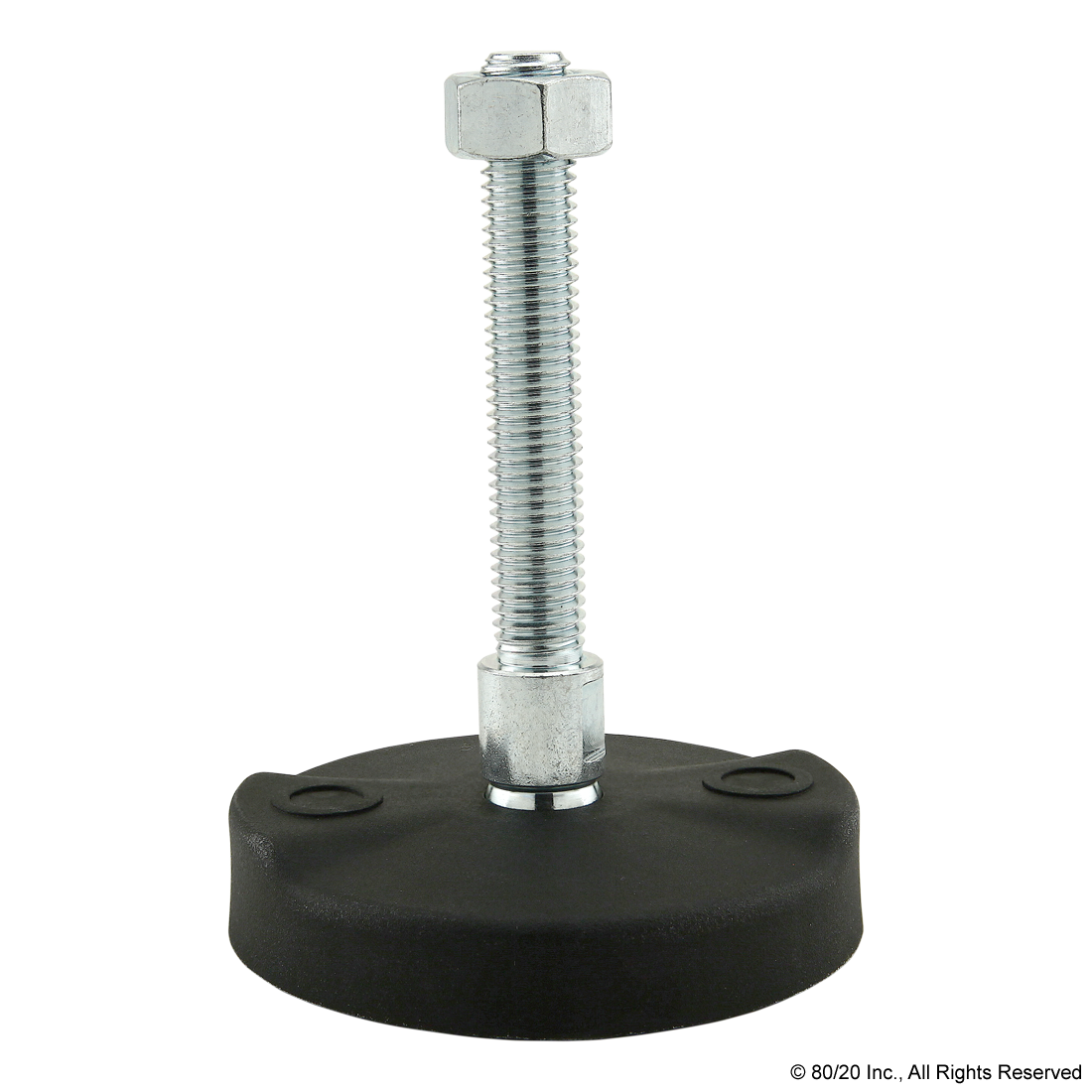THE LARGE BASE GLIDE IS A FOOT WITH LOAD CAPACITY OPTIONS RANGING UP TO 5000 POUNDS (2175 KILOGRAMS). IT MOUNTS WITH A BASE PLATE AND WORKS WELL FOR LEVELING HEAVIER APPLICATIONS. THE LARGE BASE DIAMETER CREATES MAXIMUM SURFACE AREA WHILE ALLOWING A 15 DEGREE SWIVEL IN ALL DIRECTIONS, MAKING IT PERFECT FOR INDUSTRIAL APPLICATIONS. THE GLIDE INCLUDES PUNCH OUT MOUNTING HOLES FOR ANCHORING OR BOLTING TO THE FLOOR, GREAT FOR GUARDS AND MACHINE FRAMES.