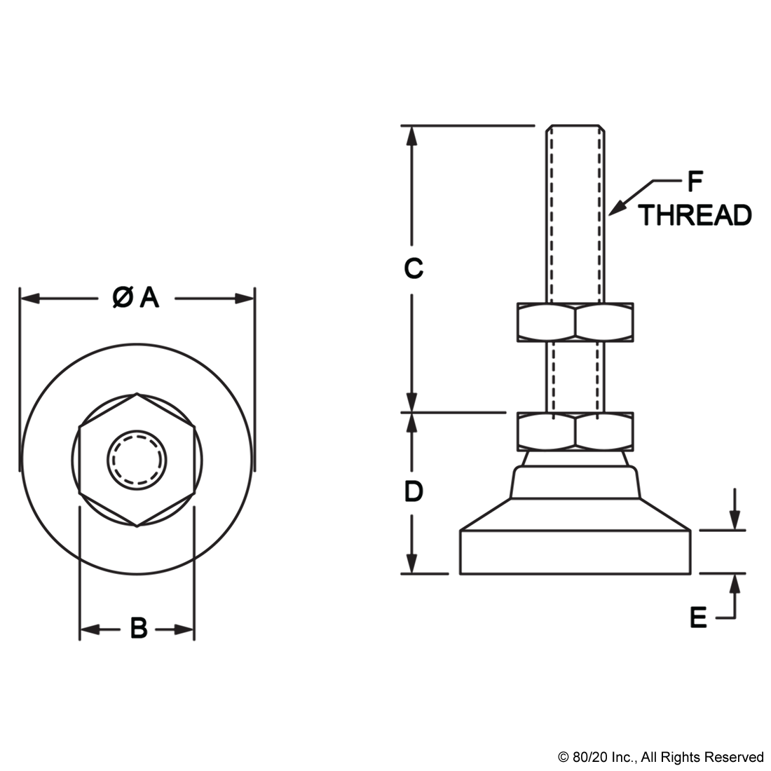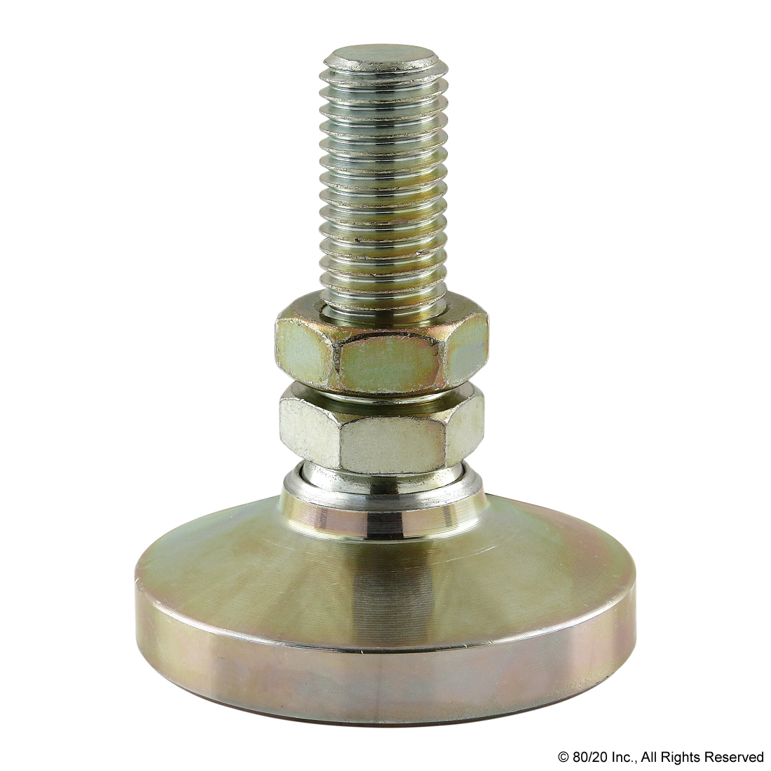 THE DELUXE LEVELING FOOT HAS A JAM NUT THAT ALLOWS IT TO PIVOT 20 DEGREES TO ACCOMMODATE UNEVEN FLOORS. THERE ARE OPTIONS AVAILABLE WITH LOAD CAPACITIES RANGING FROM 1000-7400 POUNDS (317-3357 KILOGRAMS). THE DELUXE LEVELING FOOT IS A HEAVY-DUTY OPTION IDEAL FOR LARGE STRUCTURES AND COMMONLY MOUNTS TO A PROFILE WITH A BASE PLATE.