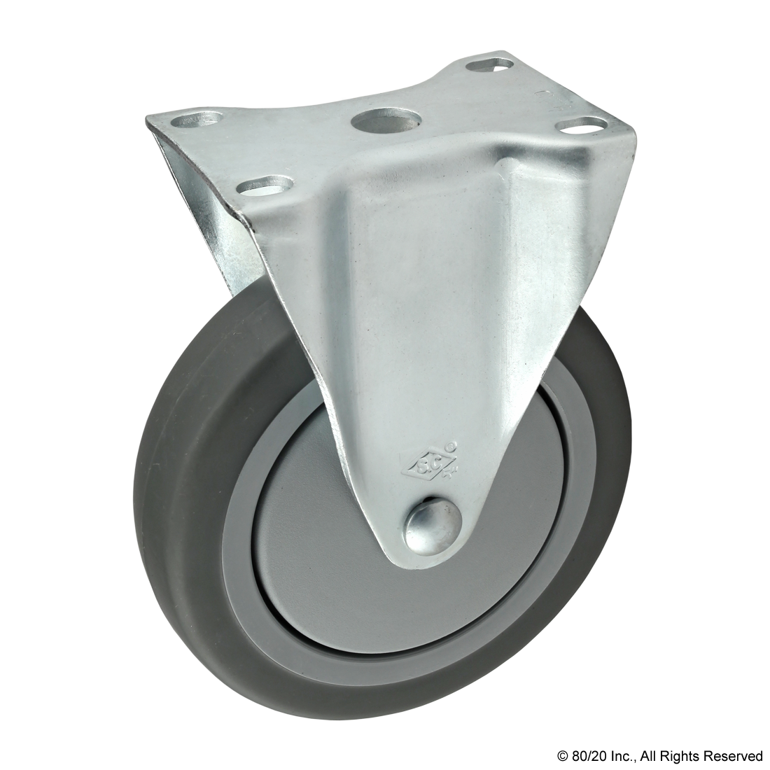 THE FLANGE MOUNT RIGID CASTER IS A FOOT THAT ADDS MOBILITY TO AN APPLICATION AND COMMONLY MOUNTS TO THE T-SLOT PROFILE END OR SIDE USING A BASE PLATE. THIS IS IDEAL FOR USE IN INDUSTRIAL SETTINGS SUCH AS MOBILE CARTS AND MATERIAL HANDLING SOLUTIONS. IT IS COMMONLY USED IN CONJUNCTION WITH SWIVEL CASTERS TO CREATE APPLICATIONS THAT EASILY PIVOT.
