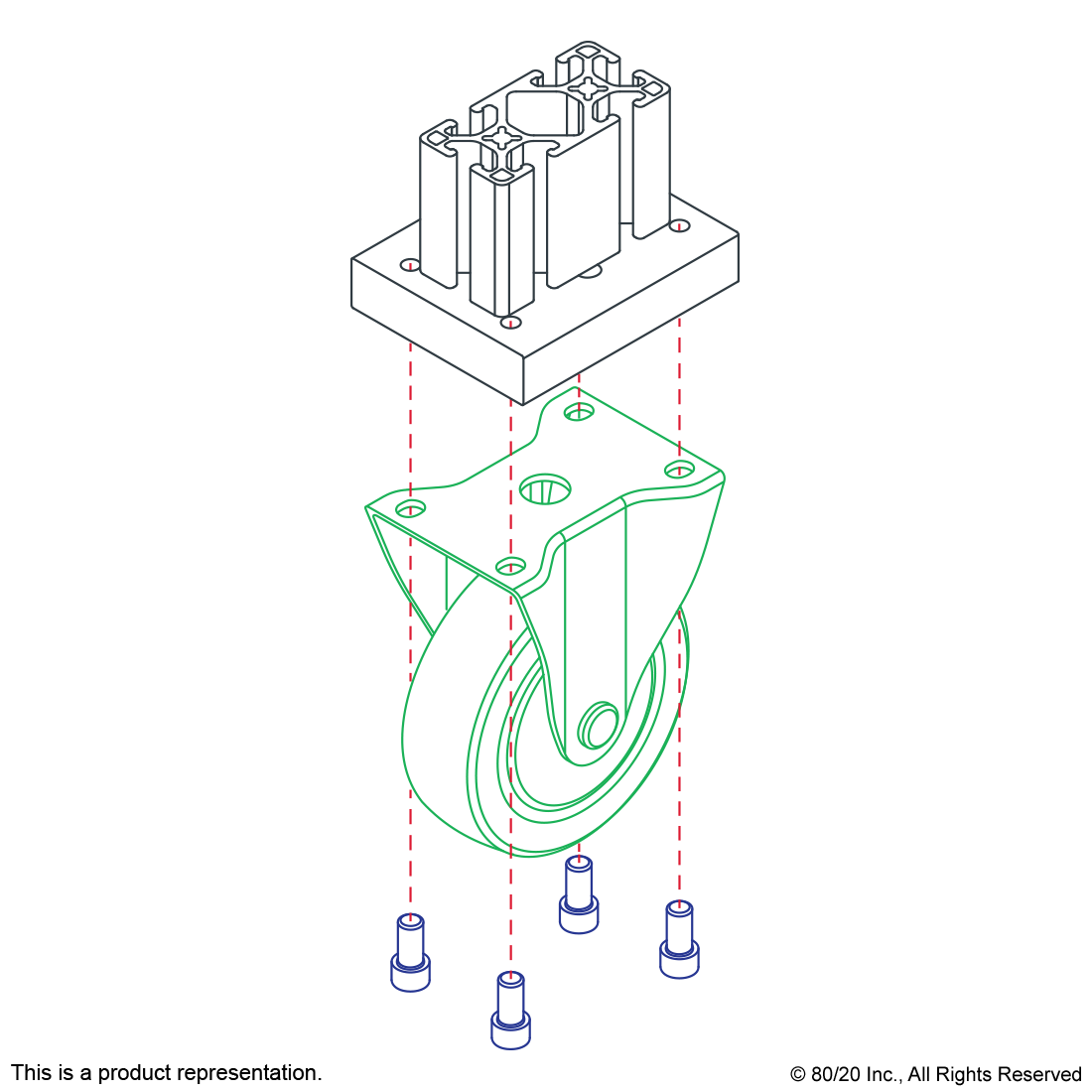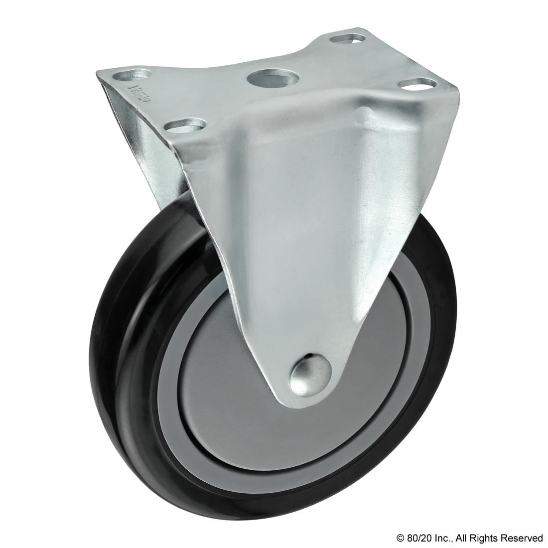 THE DELUXE FLANGE MOUNT RIGID CASTER IS A FOOT THAT ADDS MOBILITY TO AN APPLICATION AND COMMONLY MOUNTS TO THE T-SLOT PROFILE END OR SIDE USING A BASE PLATE. THE POLYURETHANE WHEELS AND HARDENED RACEWAYS ENABLE A SMOOTH MOTION. IT IS IDEAL FOR USE IN INDUSTRIAL SETTINGS SUCH AS MOBILE CARTS AND MATERIAL HANDLING SOLUTIONS.