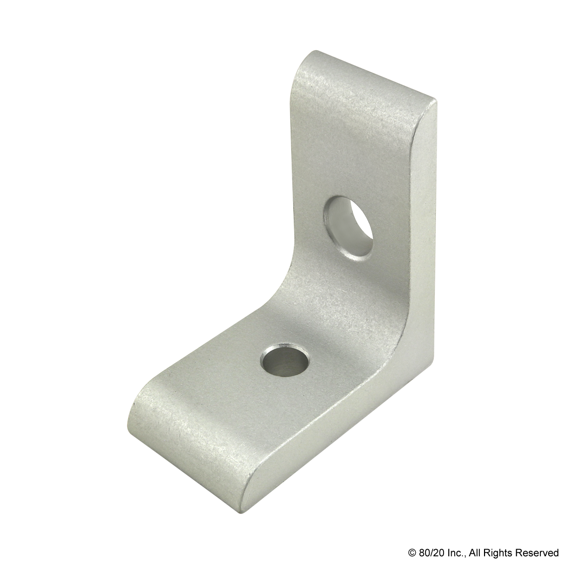 THE 2 HOLE - TRANSITION INSIDE CORNER BRACKET CREATES A 90 DEGREE CONNECTION BETWEEN PROFILES WITHIN THE SAME PRODUCT TYPE (EITHER FRACTIONAL OR METRIC) BUT OF DIFFERING SERIES. IT IS AN EXTERNAL FASTENING METHOD THAT REQUIRES NO MACHINING SERVICES. THE BRACKET IS FLUSH WITH THE PROFILES, REQUIRING TAKING UP LESS SPACE IN THE OVERALL DESIGN. THIS OPTION CAN PROVIDE INFINITE POSITIONING ALONG THE PROFILE T-SLOT, ALLOWING FOR A LARGE DEGREE OF ADJUSTABILITY AS WELL AS BEING RECONFIGURABLE AND REUSABLE. THE SUGGESTED MOUNTING HARDWARE CAN BE FOUND ON THE "SUGGESTED HARDWARE" TAB.