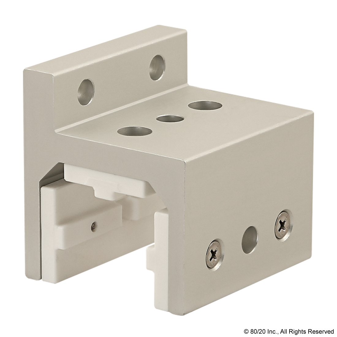 THE 3-SLOT MOUNT - SINGLE FLANGE SHORT STANDARD LINEAR BEARING WITH BRAKE HOLES IS TYPICALLY USED IN LINEAR MOTION APPLICATIONS. IT HOUSES PROFILES WITH A MINIMUM OF THREE OPEN T-SLOTS, HAS A SINGLE FLANGE AND IS A SHORTER OPTION. THE BEARING INCLUDES PADS, SCREWS AND SHIMS; THE PADS ARE MADE OF SELF-LUBRICATING UHMW. ALL 80/20 BEARINGS ARE DESIGNED FOR COMPRESSION LOADS ONLY AND NOT INTENDED TO SUPPORT HANGING LOADS.