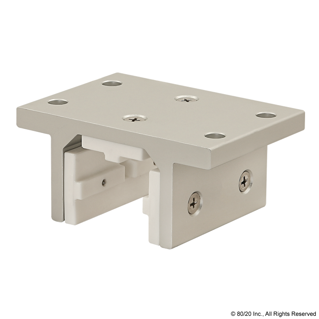 THE 3-SLOT MOUNT - DOUBLE FLANGE SHORT STANDARD LINEAR BEARING WITHOUT BRAKE HOLES IS TYPICALLY USED IN LINEAR MOTION APPLICATIONS. IT HOUSES PROFILES WITH A MINIMUM OF THREE OPEN T-SLOTS, HAS A DOUBLE FLANGE AND IS A SHORTER OPTION. THE BEARING INCLUDES PADS, SCREWS AND SHIMS; THE PADS ARE MADE OF SELF-LUBRICATING UHMW. ALL 80/20 BEARINGS ARE DESIGNED FOR COMPRESSION LOADS ONLY AND NOT INTENDED TO SUPPORT HANGING LOADS.