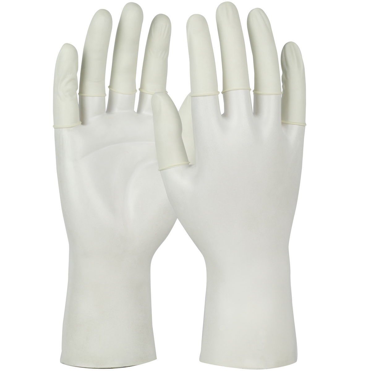 - Brand: QRP® Qualatex®Case qty: 14400Case uom: eaCategory: Critical EnvironmentColor: WhiteFeatures: Made of 100% natural latex in rolled style|Miracle Grip polymer coating provides an enhanced wet/dry grip|Sheer film for maximum dexterity|Economical|Contains 100% natural rubber latex which may cause allergic reactions|RoHS compliant|Grip: TexturedGrouping: CE FingercotsPolymer: LatexPowder: Powder FreeSegment: CE FingercotsSize: LSizes: --L--M--S--XL--Specs: Disposable Latex|3.5 mil|Powder Free|Industrial Grade|2.75 Inch| 14400 Per CaseStyle: 6C