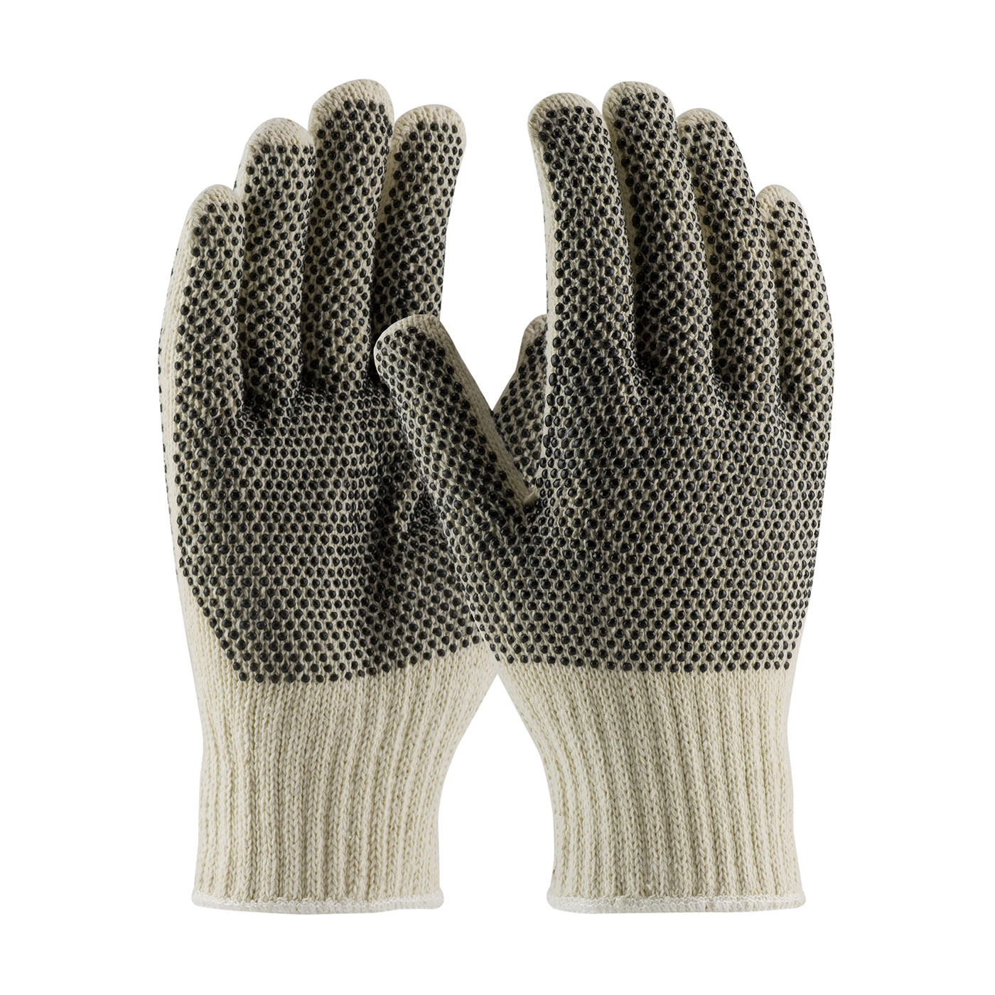 - Brand: PIP®Case qty: 240Case uom: eaCategory: Hand ProtectionCoating: PVCCoating color: BlackCoating coverage: Double-SidedColor: NaturalConstruction: --Coated Seamless Knit--Cuff: Knit WristFeatures: Seamless knit shell is comfortable and flexible|Knit Wrist helps prevent dirt and debris from entering the glove|Double-sided PVC dots provide enhanced grip and extra cut and abrasion resistanceGrip: DotGrouping: SeamlessGlove CoatedLiner material: --Cotton--Polyester--Prop 65: Cancer and Reproductive HarmProp 65 label: https://us.pipglobal.com/images/P65-Warning-Label-Cancer-and-Reproductive-Harm.jpgSegment: Seamless Knits for General DutySize: LADIESSizes: --LADIES--Specs: Cotton/Polyester|Medium Weight|Natural Color|Black PVC Dot Pattern|Double-Sided Grip|Reversible|Knit WristStyle: 708SKBSL