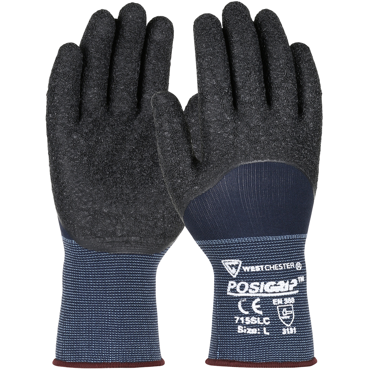 - Ansi abrasion: 3Ansi abrasion cycles: 1000Brand: PosiGrip®Case qty: 144Case uom: eaCategory: Hand ProtectionCoating: LatexCoating color: BlackCoating coverage: Palm, Fingers & KnucklesColor: BlueConstruction: --Coated Seamless Knit--Cuff: Knit WristEn388: 3131En388 2016: 3131En388 a: 3En388 c: 1En388 p: 1En388 t: 3Gauge: 15Grip: CrinkleGrouping: SeamlessGlove CoatedLiner material: --Nylon--Segment: Seamless Knits for General DutySize: LSizes: --L--M--S--Specs: Blue Nylon Shell|15 Gauge|Black 3/4 Dip Latex CoatingStyle: 715SLC