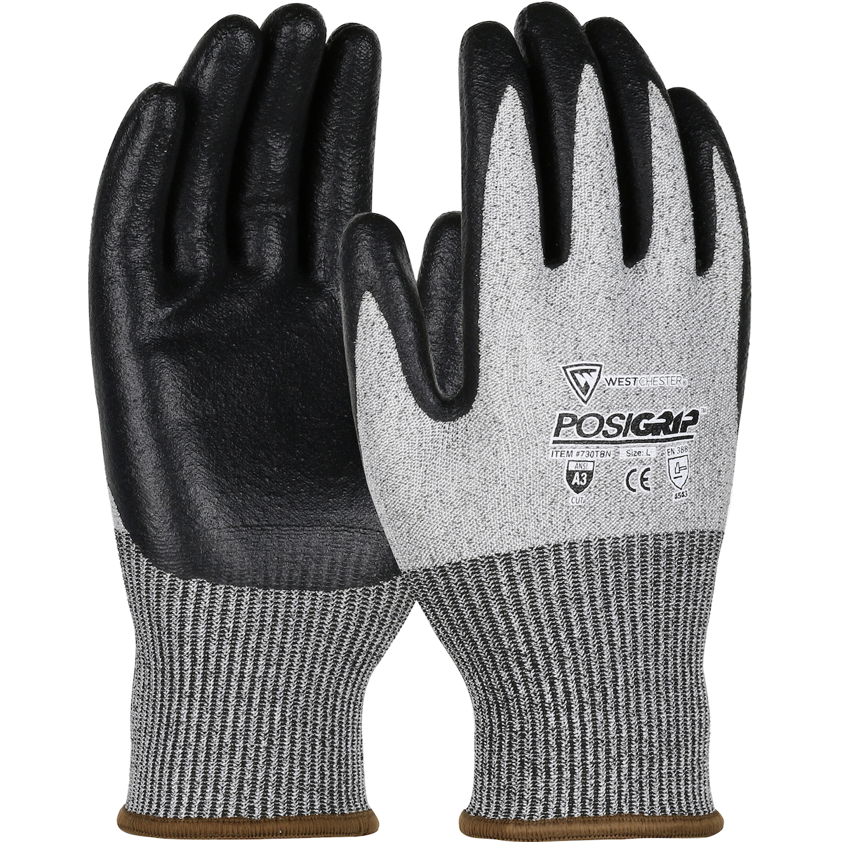 - Brand: PosiGrip®Case qty: 144Case uom: eaCategory: Hand ProtectionCoating: NitrileCoating color: BlackCoating coverage: Palm & FingersColor: GrayConstruction: --Coated Seamless Knit--Cuff: Knit WristEn388: 4543En388 2016: 4543CXEn388 a: 4En388 c: 5En388 i: XEn388 n: CEn388 p: 3En388 t: 4Gauge: 13Grip: SmoothGrouping: Cut Resistant GlovesLiner material: --HPPE--Segment: Gloves with PolyKor FiberSize: LSizes: --2XL--L--M--S--XL--Specs: PosiGrip Liner|Black Ntrile Coated Palm|Palm & Fingertips|Knit WristStyle: 730TBN