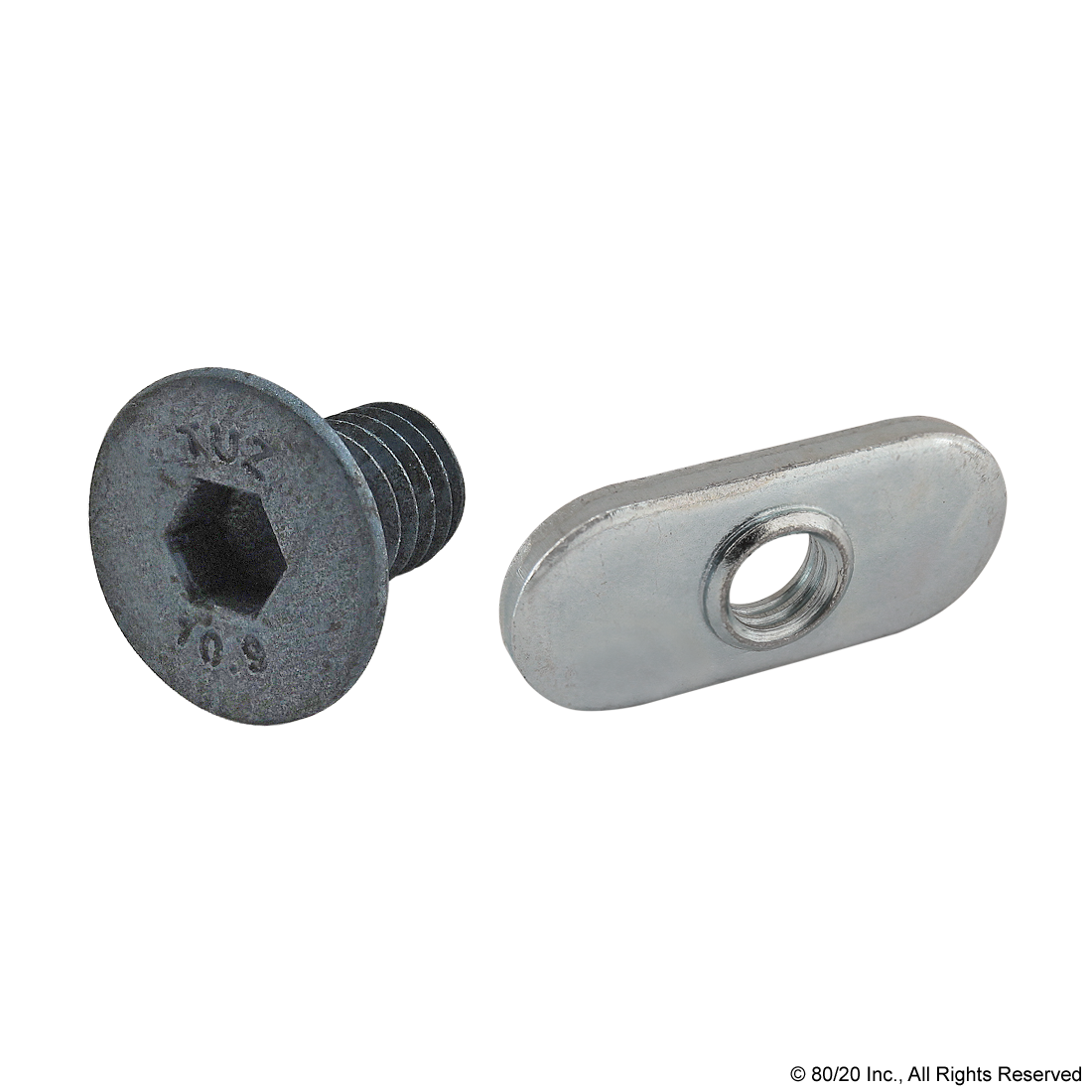 BOLT ASSEMBLY: (2) M6 X 10.00MM BLUE FHSCS WITH (2) SLIDE-IN ECONOMY T-NUT - CENTERED THREAD - BRIGHT ZINC