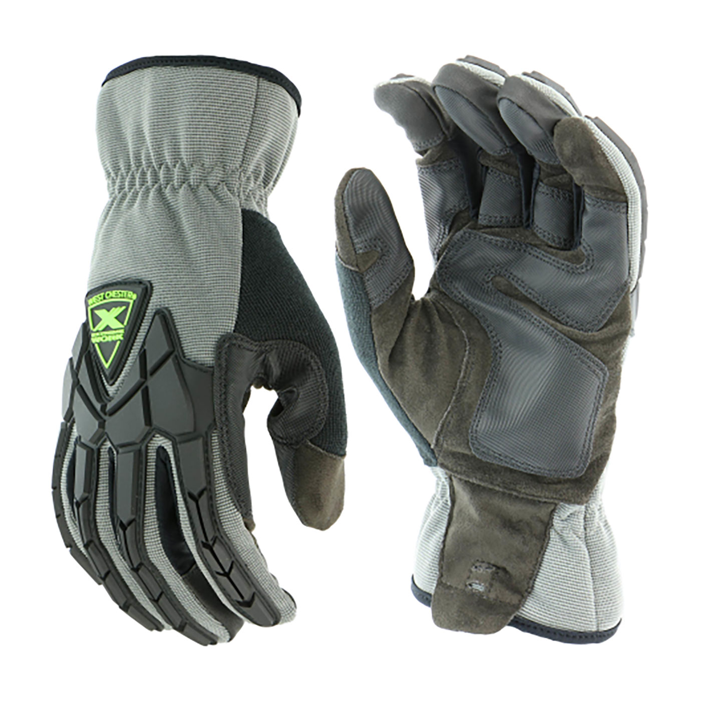 - Back: SpandexBrand: Extreme Work® Strike ProteX™Case qty: 72Case uom: eaCategory: Hand ProtectionClosure: ElasticColor: GrayConstruction: --Cut-and-Sewn--Reinforced Thumb Crotch--Touchscreen Compatible--Cuff: Slip-onGrouping: Hi Performance GlovePalm: ToughX SuedeResistance type: --Impact Resistant--Abrasion Resistant--Segment: All Purpose Work GlovesSize: MSizes: --2XL--M--XL--Specs: Suede Leather Palm|Gray Spandex Back|TPR Impact Protection| Slip-On Cuff|STYLE NOW ON CLOSEOUT AT A GREAT PRICE!Style: 89305GYTask: Construction and Industrial