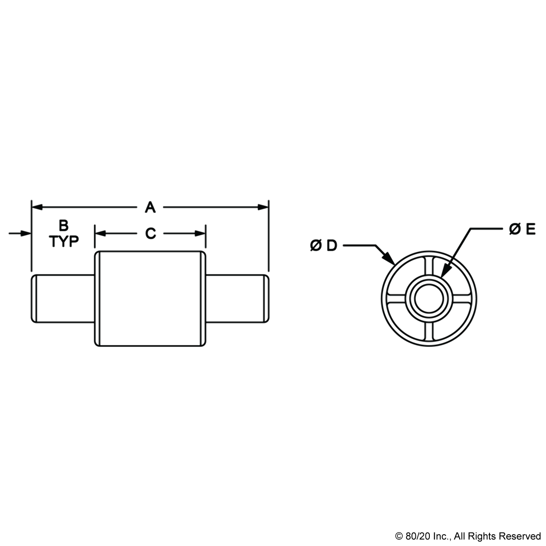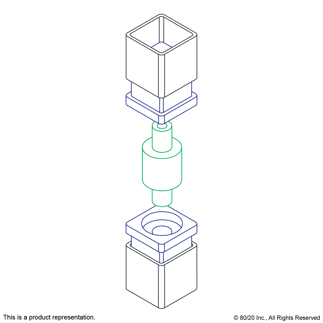 THE 2 WAY - SPACER IS MADE OF NYLON AND FITS INTO A SPACER RECEPTACLE INSERT TO CREATE TENSION. IT ADDS SPACE BETWEEN QUICK FRAME PROFILES TO FORM VARYING LENGTHS OF BARS AND CAN ALSO BE USED TO PROVIDE A STABLE PIVOT FOR DOOR APPLICATIONS. THE 2 WAY - SPACER CONNECTS PROFILES QUICKLY AND EASILY USING ONLY A SOFT-FACED MALLET TO FORM LIGHT-DUTY YET STURDY BUILDS. IT REQUIRES NO MACHINING SERVICES.