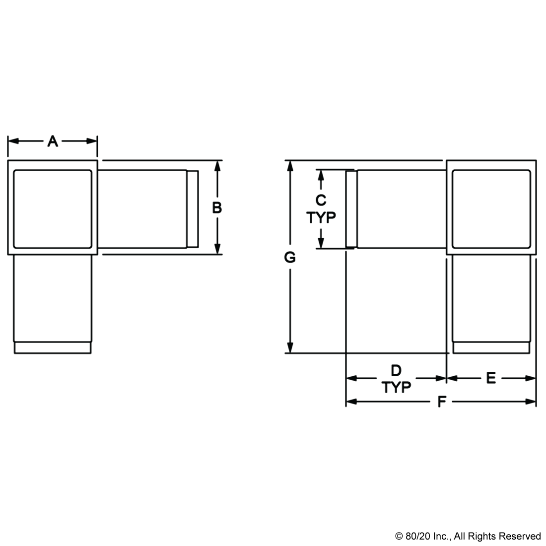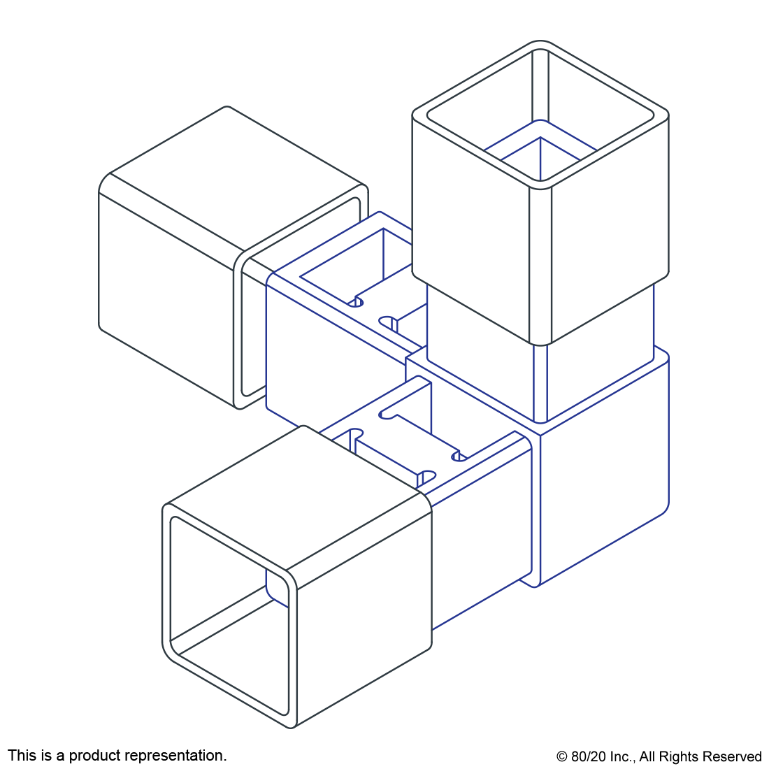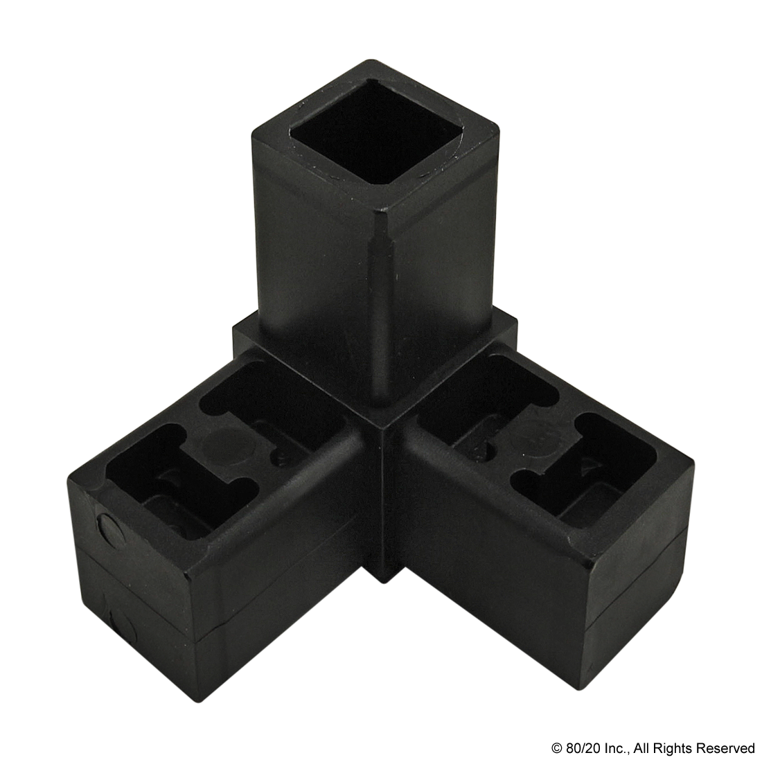 THE 3 WAY - CORNER CONNECTOR IS MADE OF NYLON AND IS USED WITH A QUICK FRAME PROFILE WHICH HAS BUILT-IN RIDGES THAT BITE INTO THE FASTENER TO CREATE TENSION WITHOUT THE USE OF ADDITIONAL HARDWARE. IT PROVIDES FLUSH 90 DEGREE CONNECTIONS OF UP TO THREE QUICK FRAME PROFILES, CONVENIENT WHEN YOU WANT TO BRANCH ANOTHER PROFILE OFF OF A CORNER. THE 3 WAY - CORNER CONNECTOR IS COMMONLY USED WHEN TRANSITIONING BETWEEN STANDARD AND FLANGED PROFILES AND USES ONLY A SOFT-FACED MALLET TO FORM LIGHT-DUTY YET STURDY BUILDS. IT REQUIRES NO ADDITIONAL HARDWARE OR MACHINING SERVICES. CONNECTING FLANGED QUICK FRAME PROFILES AT A 90 DEGREE ANGLE REQUIRES A 45 DEGREE MITER CUT TO CONNECT WITHOUT INTERFERENCE.,